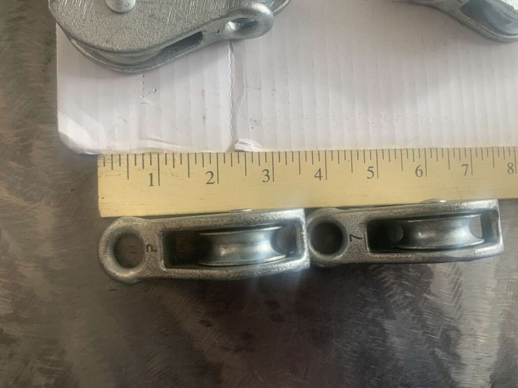 VenmoI have some of these peerless hardware fast galvanized pulleys for 3/8 inch rope. Asking $10 each. They are 3 1/2 inches in length. The sheave diameter is 1 1/2” x 1/2”. Can be used for multiple purposes. Let me know if you’d like some. The manufacturer states that these are rated for at least 1000 pounds but they are not to be used for lifting humans or lifting things over the top of humans for safety reasons.