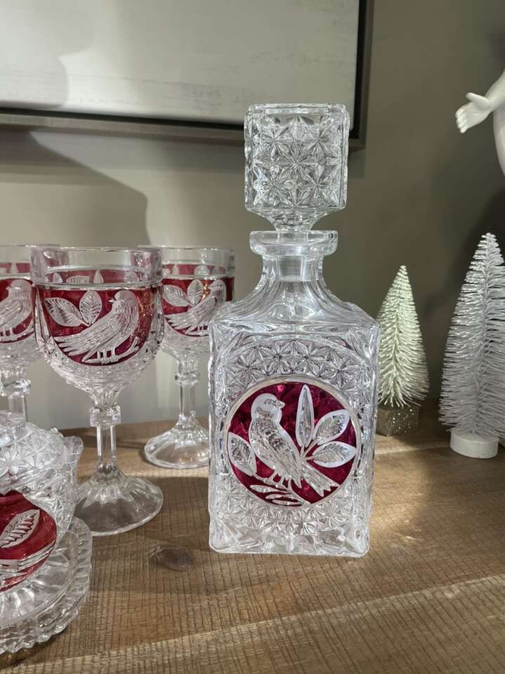 VenmoGreat collection of vintage Hofbauer crystal in great condition. Decanter stopper has small chip. One goblet has manufacturer’s defect on the base. Check my other listings for more detail on individual pieces. Salt and Pepper shakers also available for additional cost.