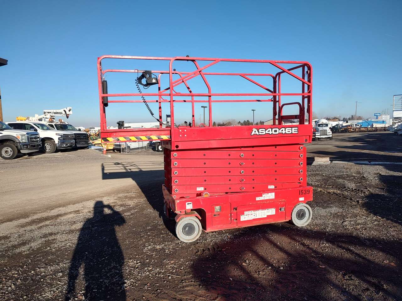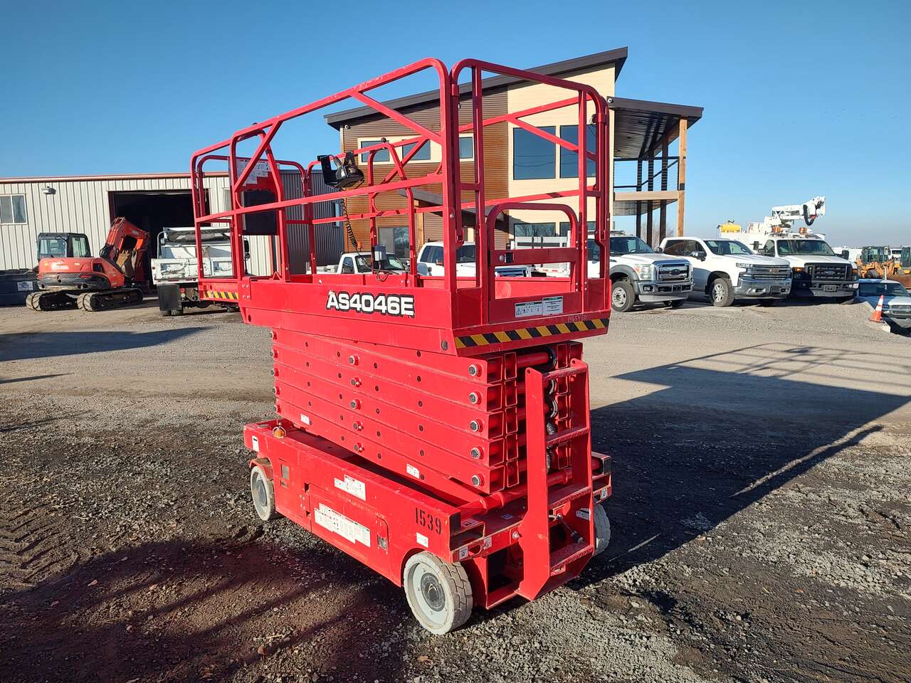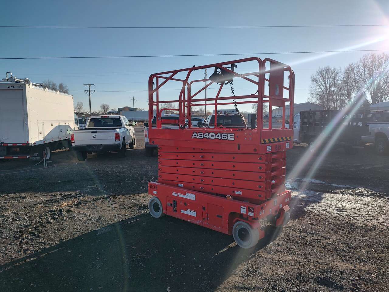 2020 LGMG 40' electric man lift, 266 hours, 40 foot platform height, 3 foot 11 inches wide, 8 feet long, extends to 11 feet long, 4 trojan 12 volt deep cycle batteries, non marking tires, clean former municipal machine $19,500