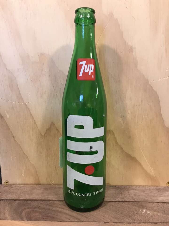7-UP Soda Bottle $6 Vintage 1970 Applied Color Label Return for Deposit Bottle Very Good condition 16 oz Approximately 10 3/4 inches tall, 2 1/2 inch base diameter