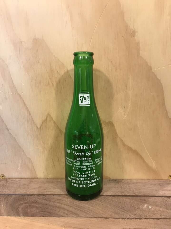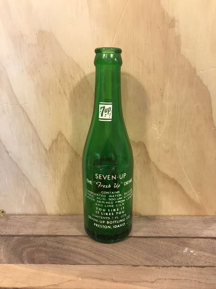 7-UP Soda Bottle $10 Vintage 1951 The Fresh up Drink Preston, Idaho Bottling Applied Color Label Good condition 7 oz Approximately 8 inches tall, 2 1/4 inch base diameter