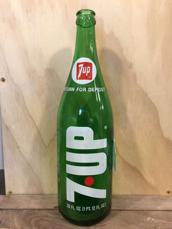 7-UP Soda Bottle $8 Vintage 1972 Applied Color Label Return For Depsit Bottle Very Good condition 28 oz Approximately 11 3/4 inches tall, 3 3/4 inch base diameter