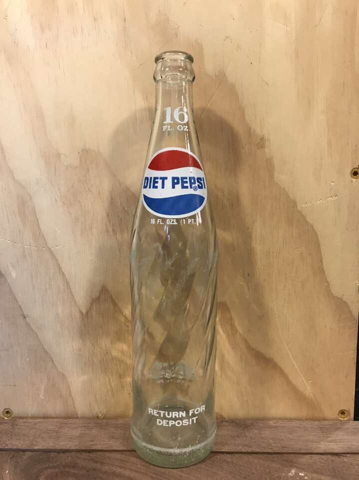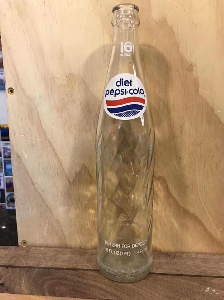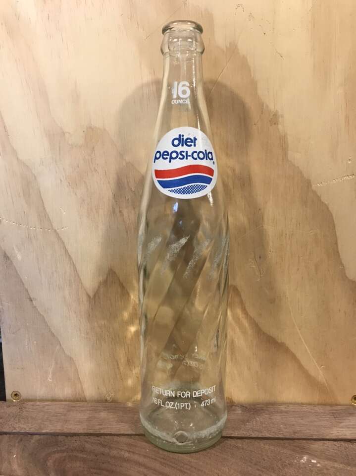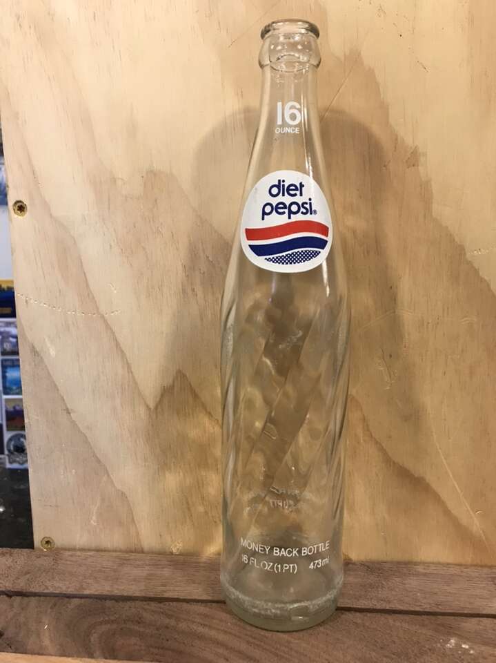 Diet Pepsi-Cola Soda Bottle $6 Vintage 1970’s /1980’s (1983?) Applied Color Label Money Back Bottle Good condition 16 oz Approximately 11 inches tall, 2 1/2 inch base diameter