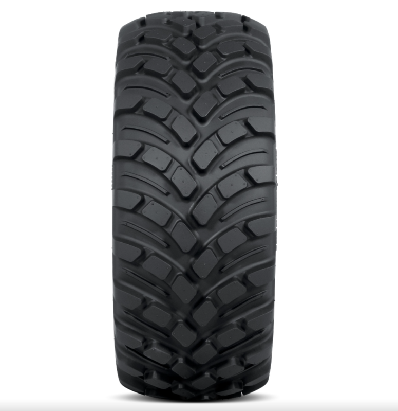 The tire is constructed to optimize tire-to-soil impact without damaging the turf.