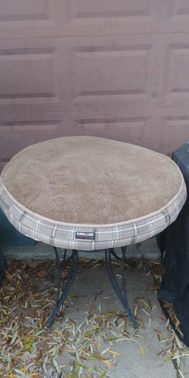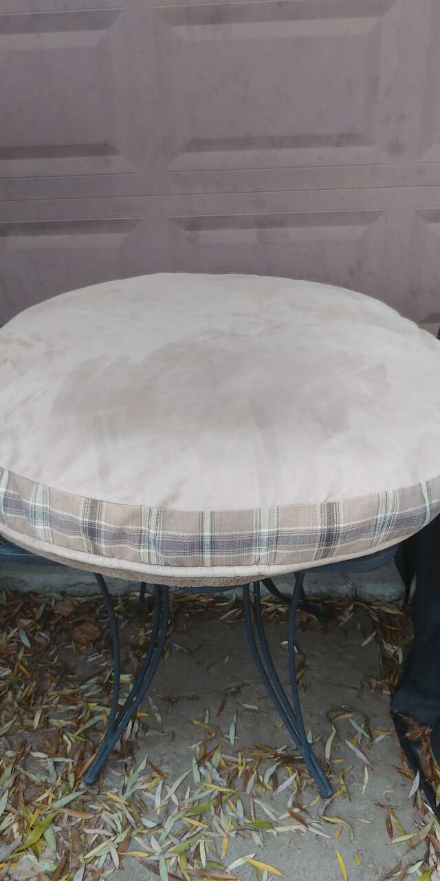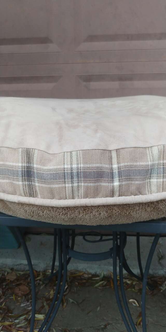 VenmoKirkland, Suede on one side furry on other. No rips, tears, smells or stains freshly laundered. Very fluffy.