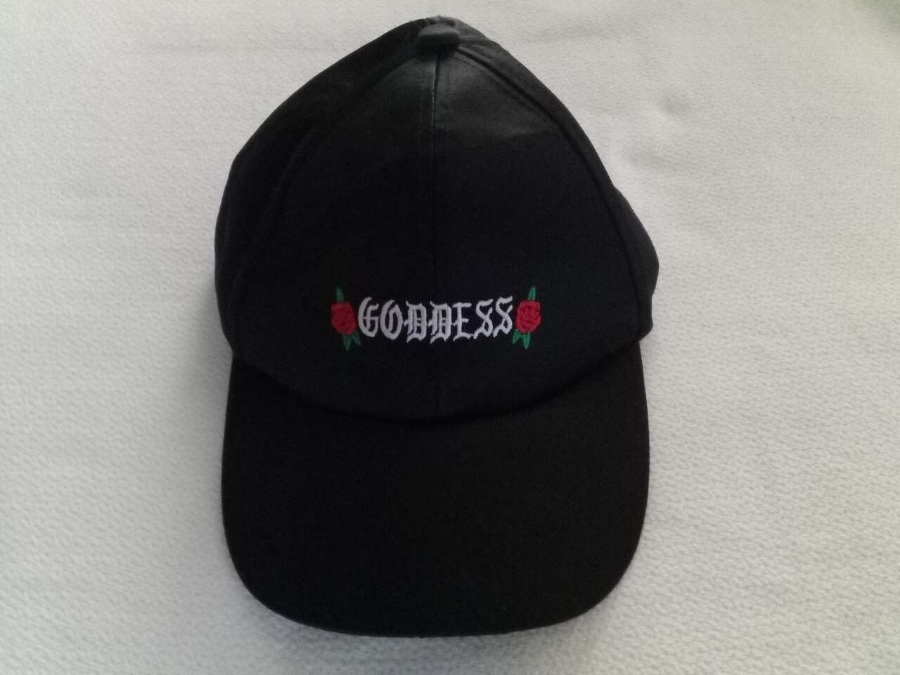 Show off your style with this new without tags black Goddess and ROSES baseball hat from FOREVER 21. The hat features a beautiful rose-themed design that adds a touch of elegance to any outfit. The adjustable size ensures a comfortable fit for all head sizes. Made from 100% polyester, this hat is durable and long-lasting. Perfect for women of all ages, the hat is a must-have accessory for any fashion-conscious individual. Whether you're going out for a walk or running errands, this hat is sure to make you stand out from the crowd.