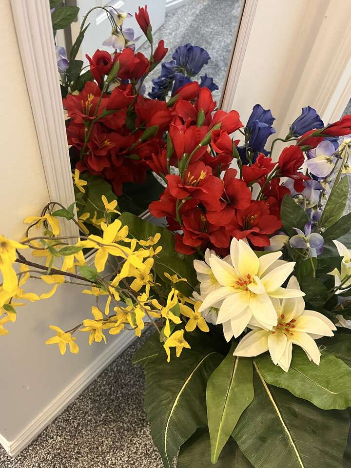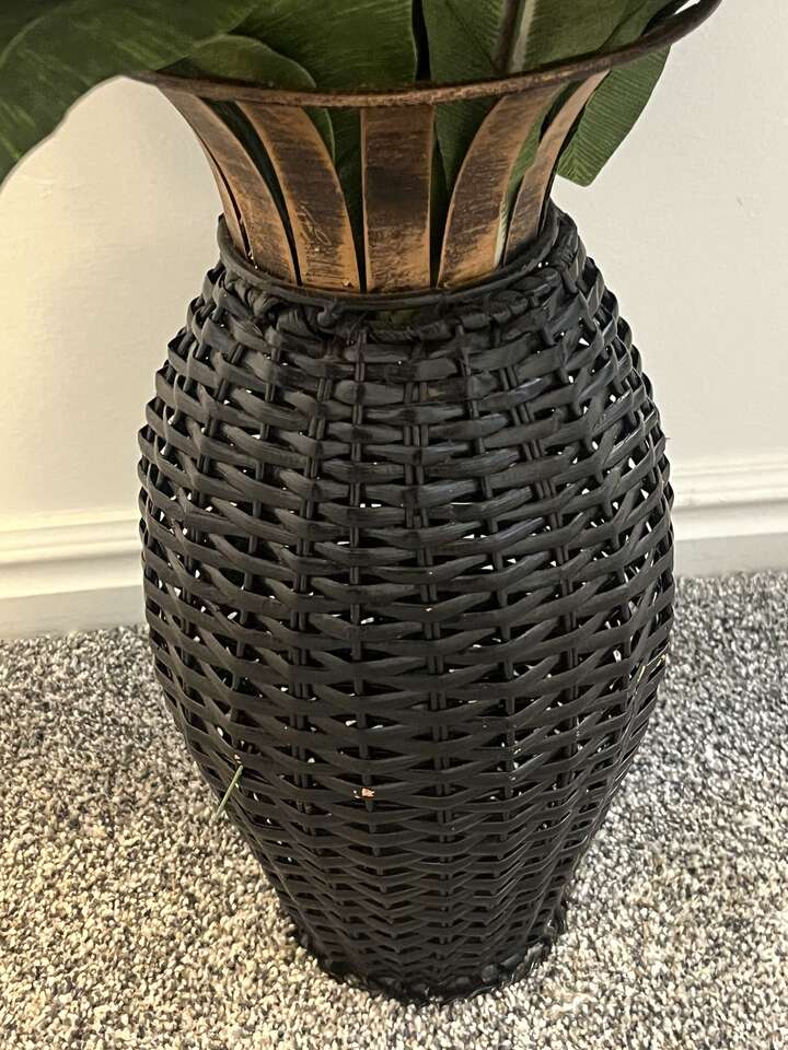 ApplePayGorgeous floor plant flower arrangement. The base/vase is sturdy, black wicker looking with a brass looking top. Fake leaves and flowers are diverse. It is about 27 inches tall and 22 inches wide. The base alone is 15 inches tall. $20 cash only. You haul away. Text Kim if interested. 801-739-5977