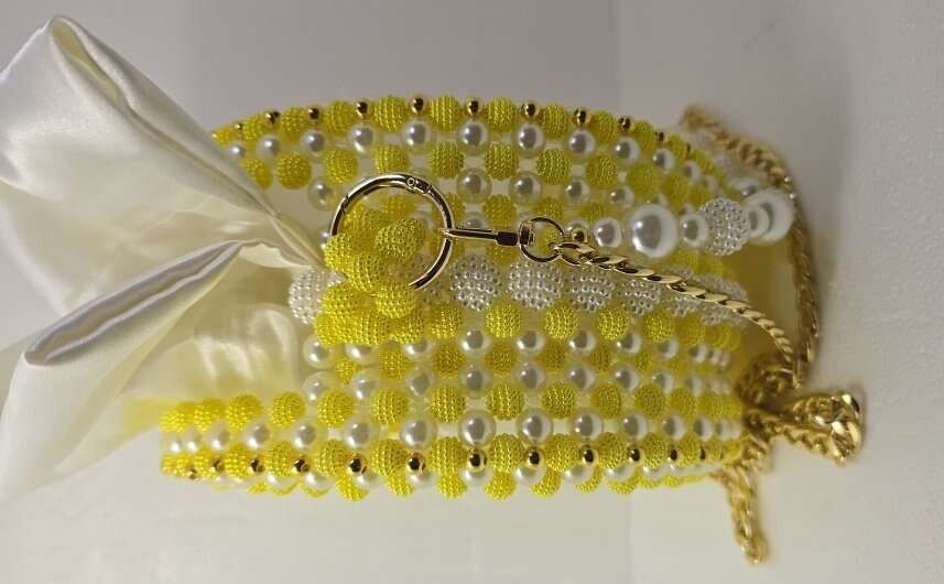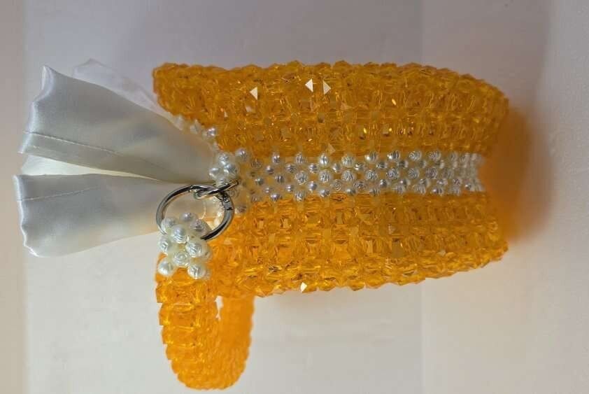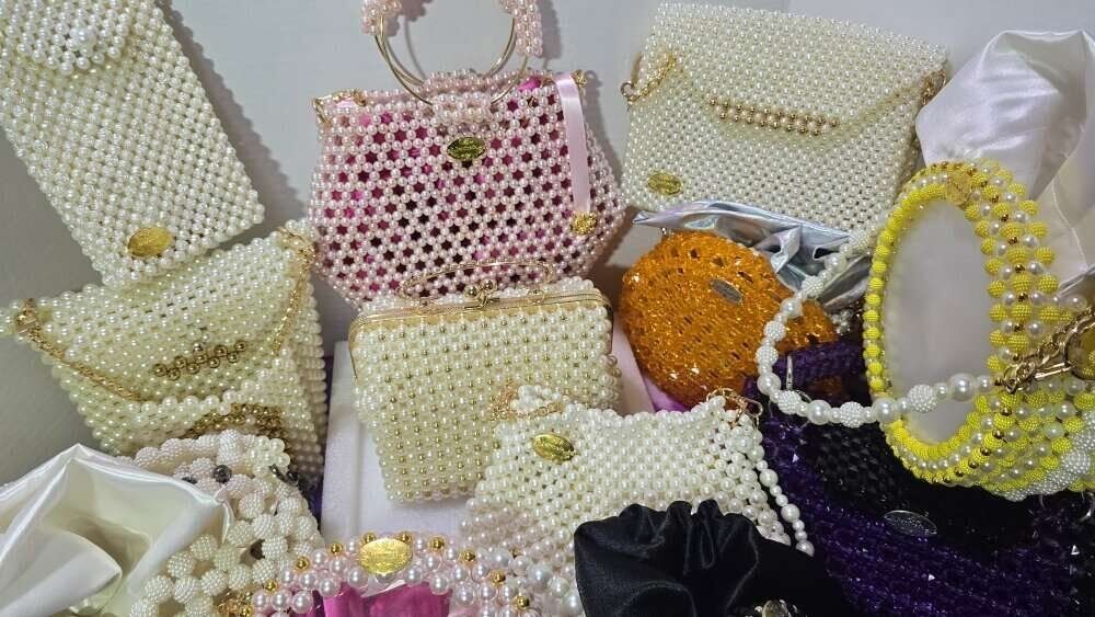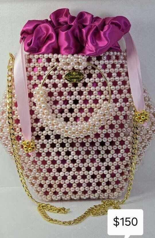 Hello everyone, I would like to introduce myself. I am the new cute trend, I am a professional handmade from colorful beads and different sizes, there is not much of me here. Look at how beautiful and shiny I am, and very beautiful in parties, holidays, weddings, and Christmas Day, and I am a luxurious gift for dear ones. It takes about a day or two or three days to make me, depending on the style and model. I am very beautiful in the hands of those who love and care for me. Each one of us has a different price. Please keep watching me to see every new design. Thank you for reading. (Please inquire about me and my price, thank you).