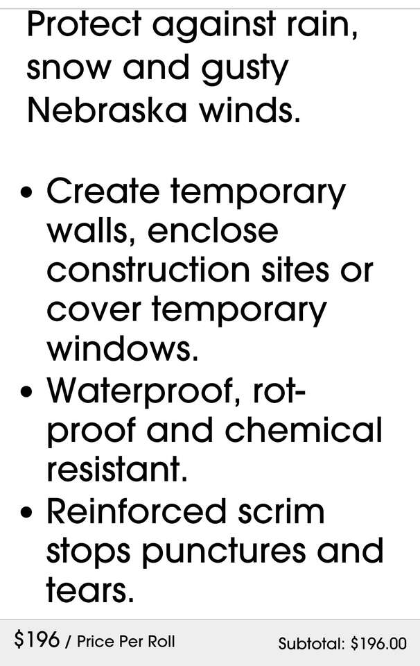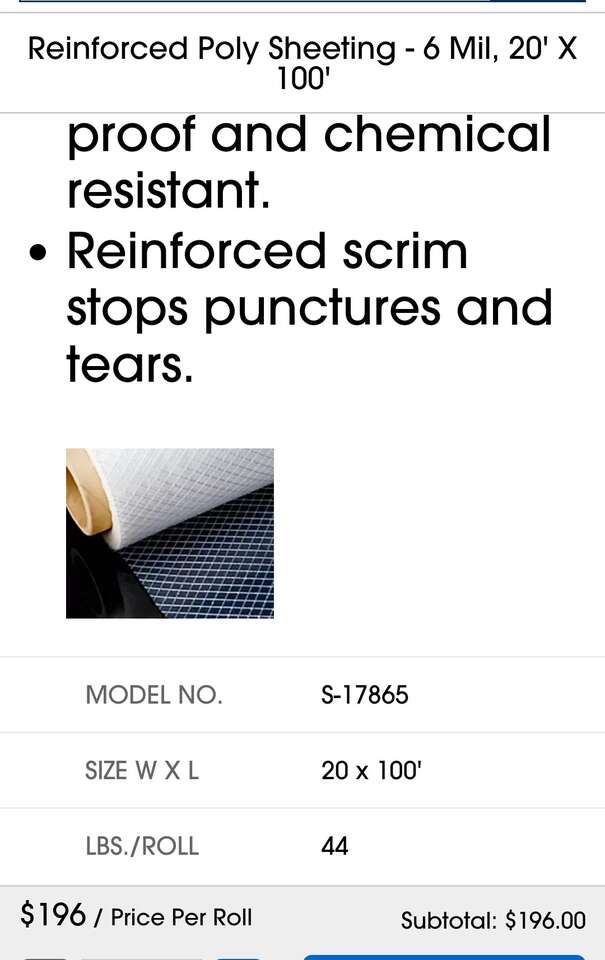 New Reinforced Poly Sheeting 10 available $120 each 20'x100' Rolls