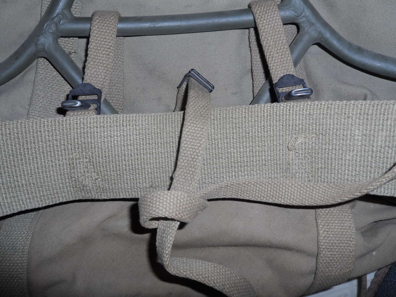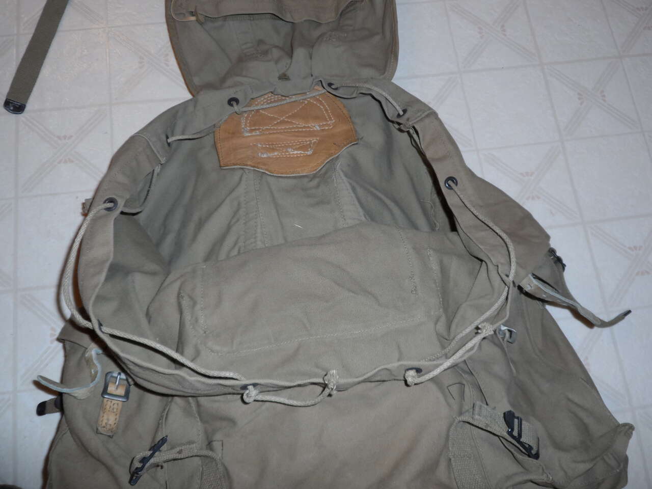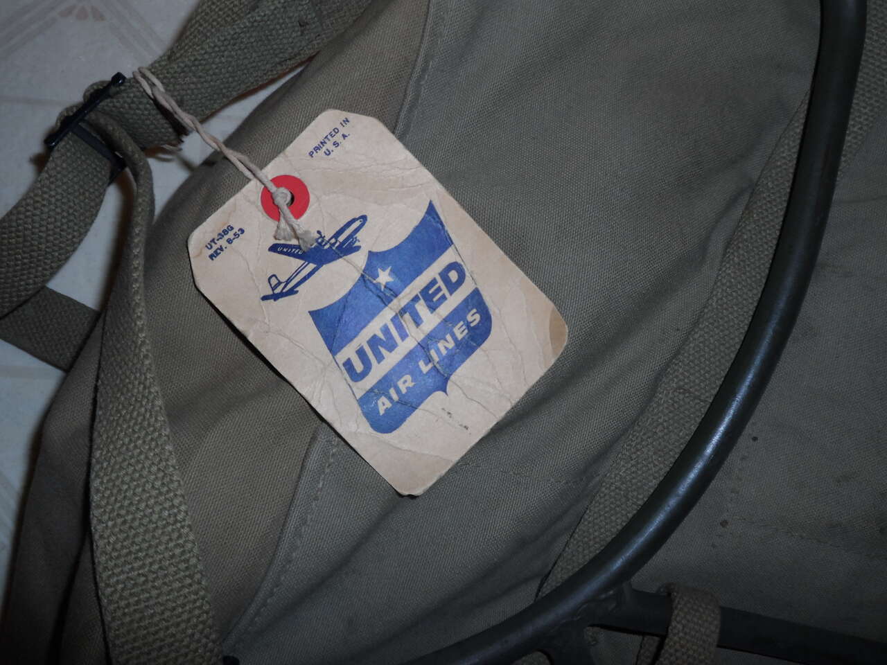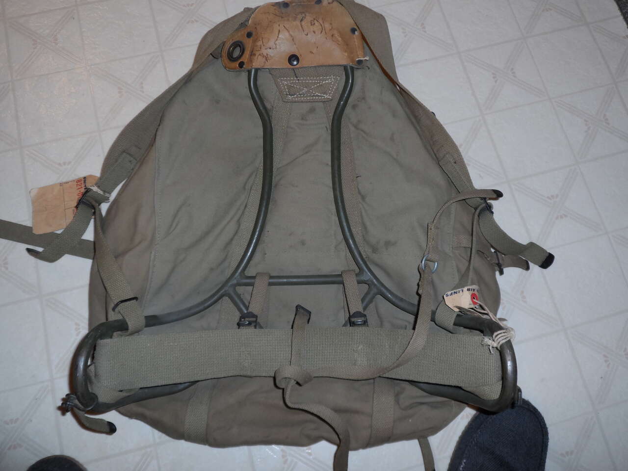 MIlitary surplus item. A 2ND pattern Rucksack with frame from the WWII era. Pack manufactured by BAKER-LOCKWOOD Co. 1942. This pack is in very good condition and appears to have had very little use. Note the photo of the United Airline Baggage tag which shows the aircraft to be a 4 engine propellar aircraft.