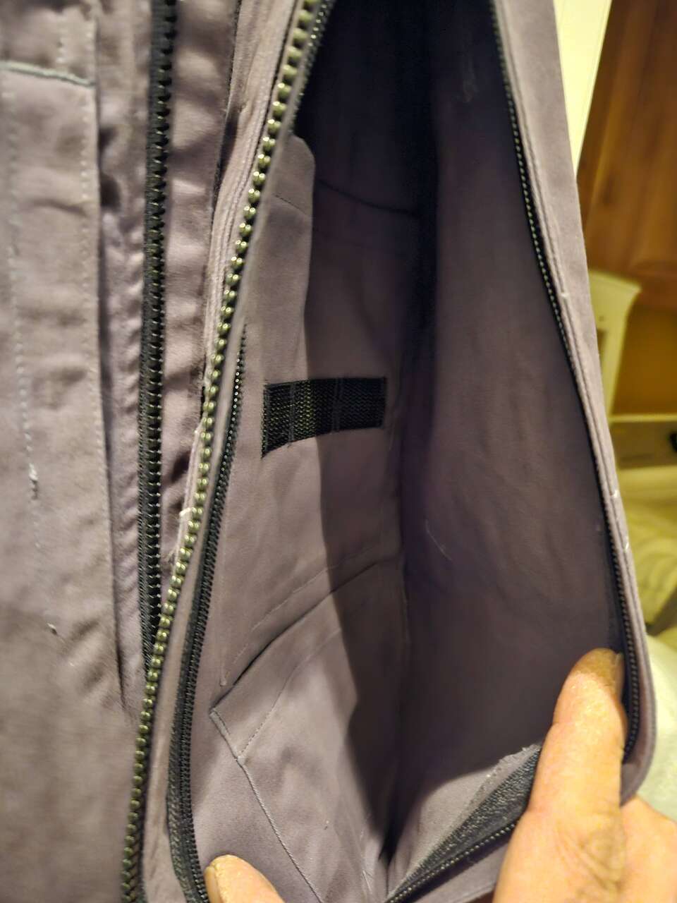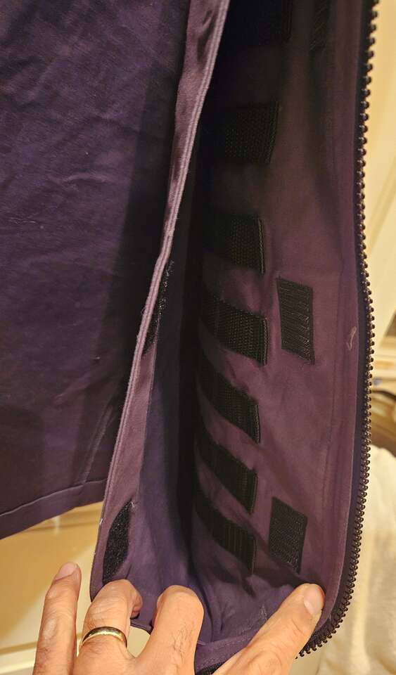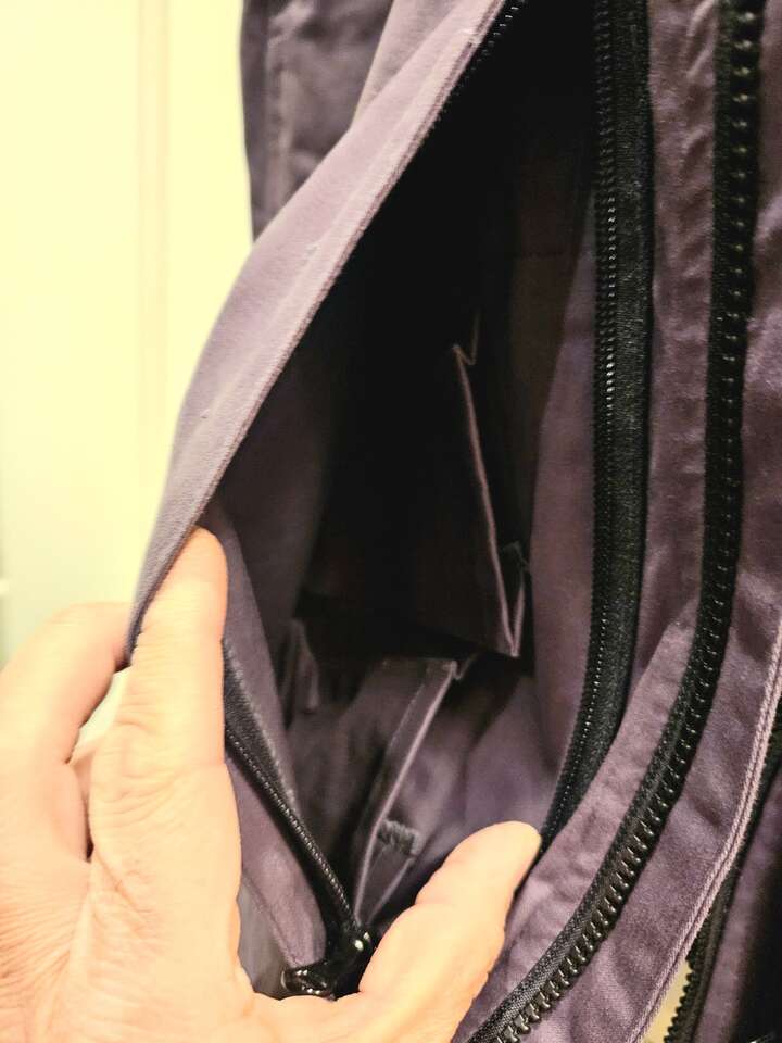 Two large external zippered pockets. One on the left has internal pocket for CCW. One on the right has internal pockets for spare magazines.