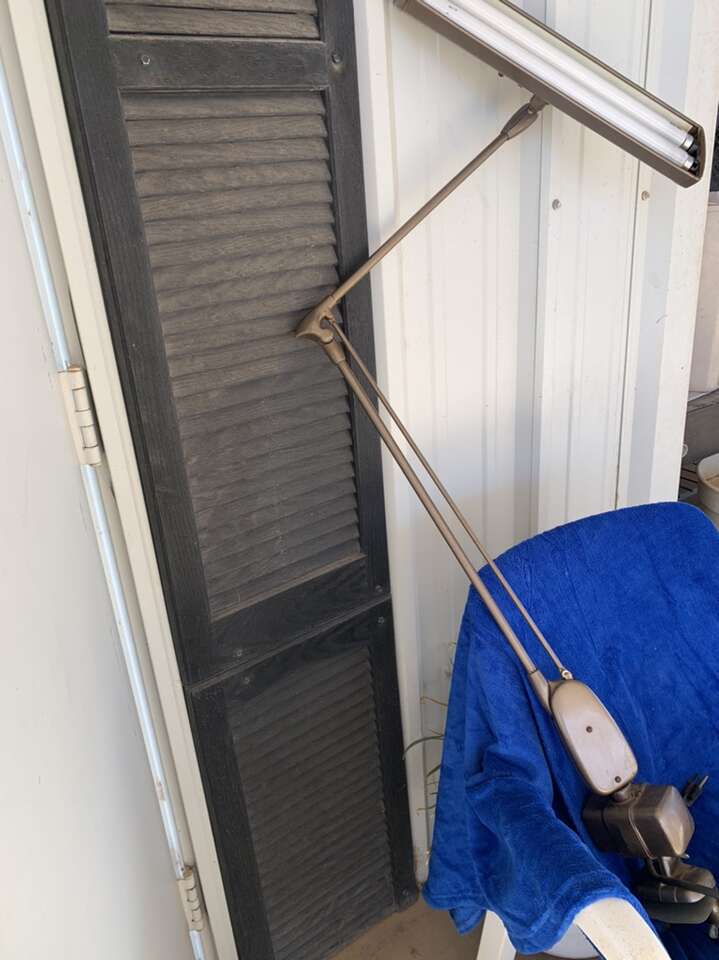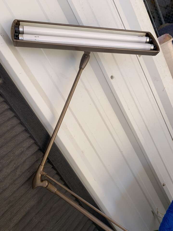 Dazor Floating Drafter Fixture clamp on lamp with double fluorescent lights. Will mount to any table and is fully adjustable. Brown metal. $40.