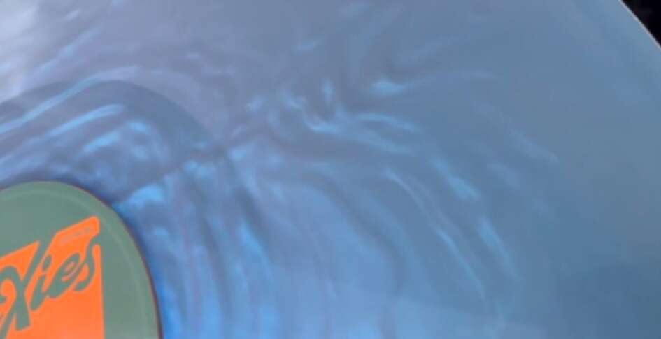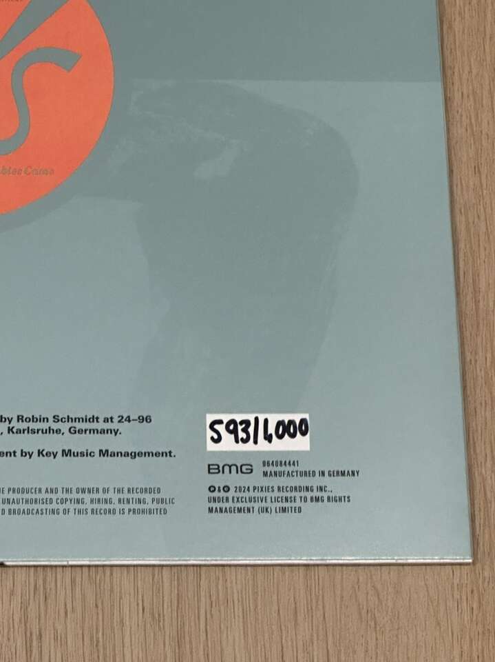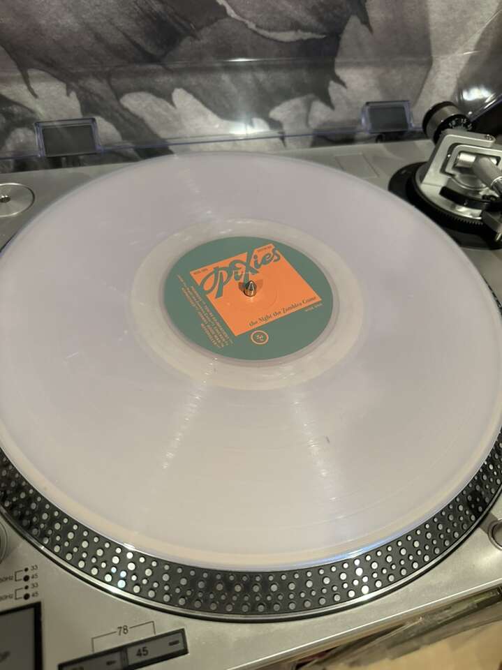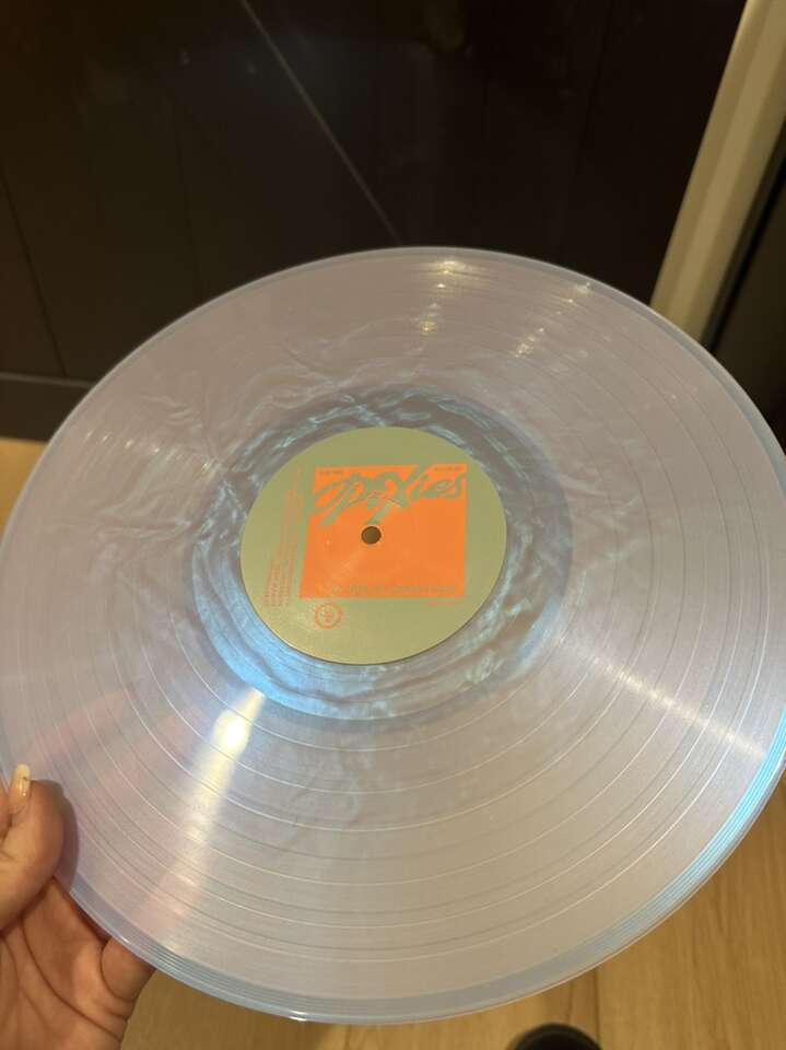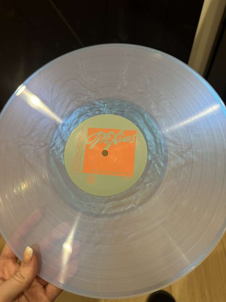 Pixies album pressed to shimmering arctic pearlescent LP with die cut sleeve. Limited to 1,000 copies and hand-numbered. This one is numbered 593. It was shipped open like this so I took pictures of it and then instantly put it in a plastic cover so that it remains in great condition. The pearlescent vinyl is hard to get good pictures of cause it’s hard to see how cool it is. It’s seriously so pretty I can’t wait for you to see it in person.