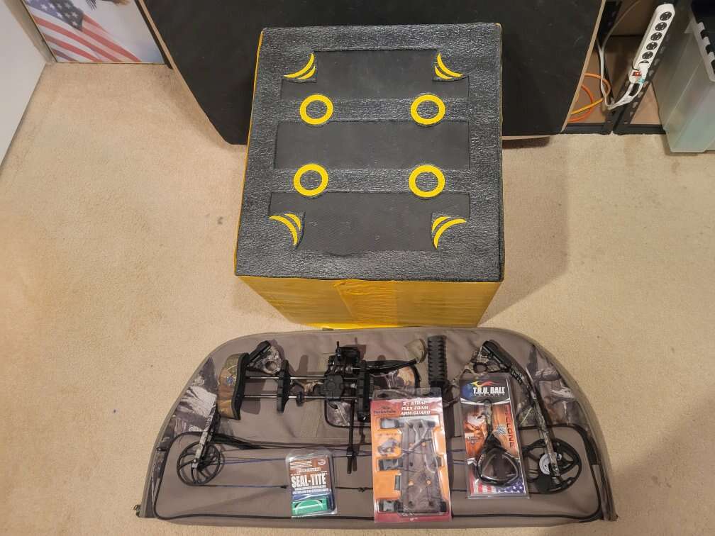 VenmoThis is a full 6 piece bow package. Comes with- New Quest Rogue G5 compound bow - Real tree camo. Draw weight 70 lbs. New Tarantula 3 pocket camo case. New Morrell's Yellow Jacket Supreme 4 block target. Size 20"×22". New T.R.U. Ball Cyclone trigger. New Tarantula 3-strap flex foam arm guard. New Bohning seal-tite bowstring wax. Thanks for looking.