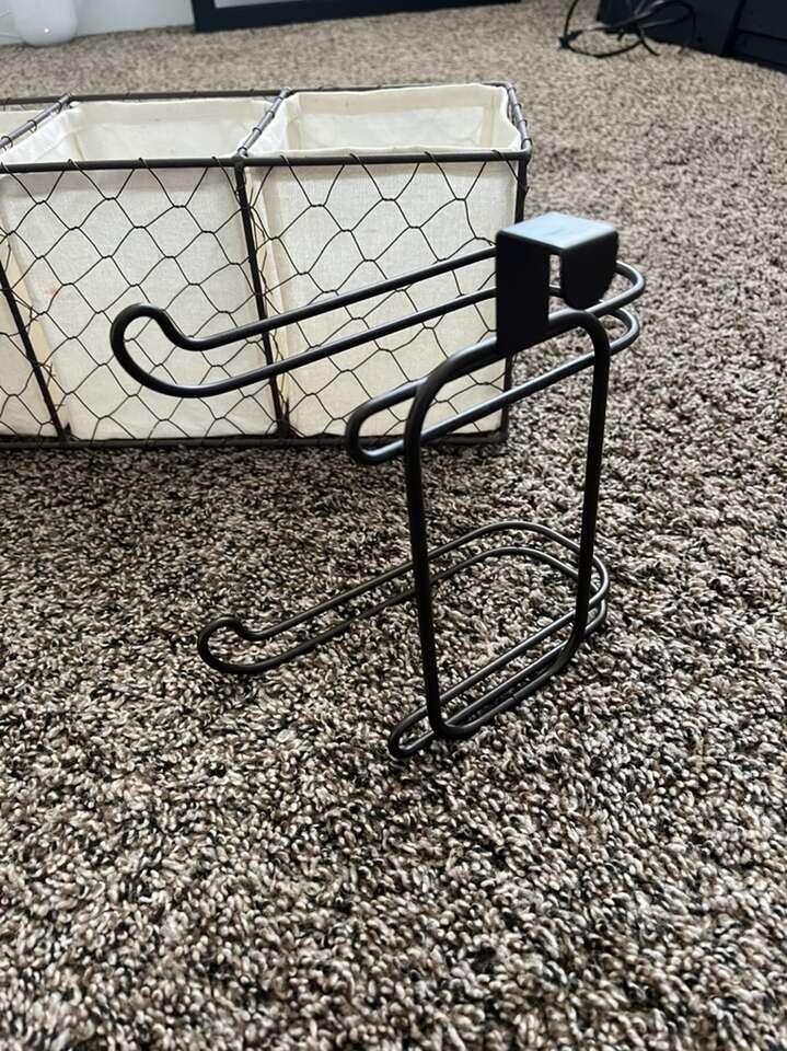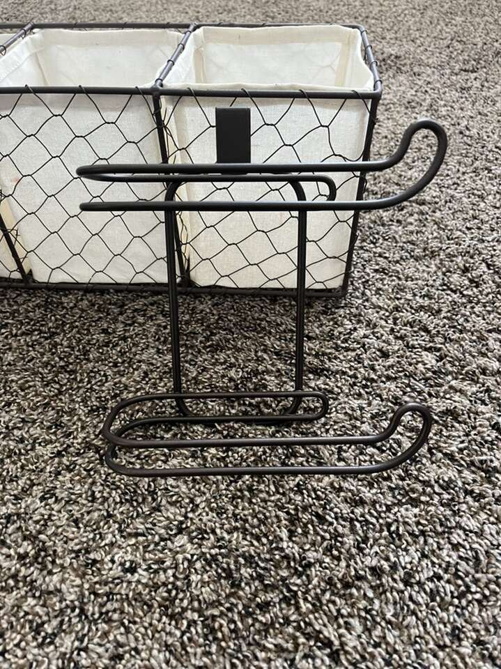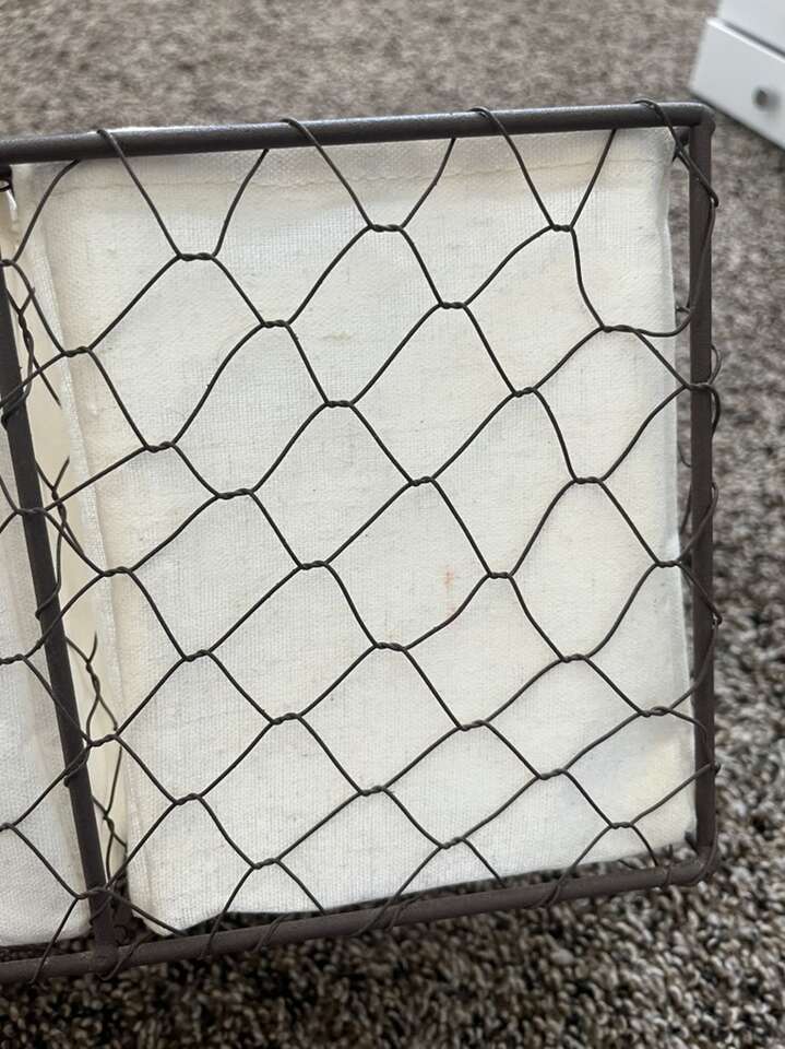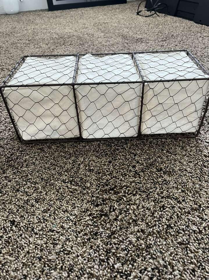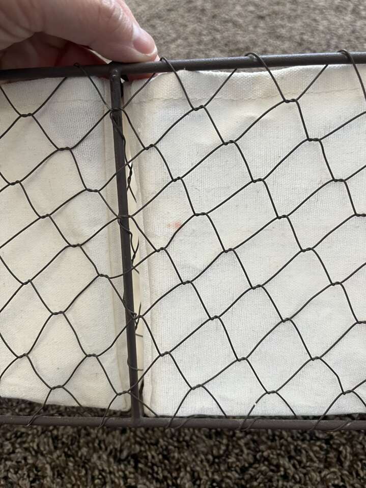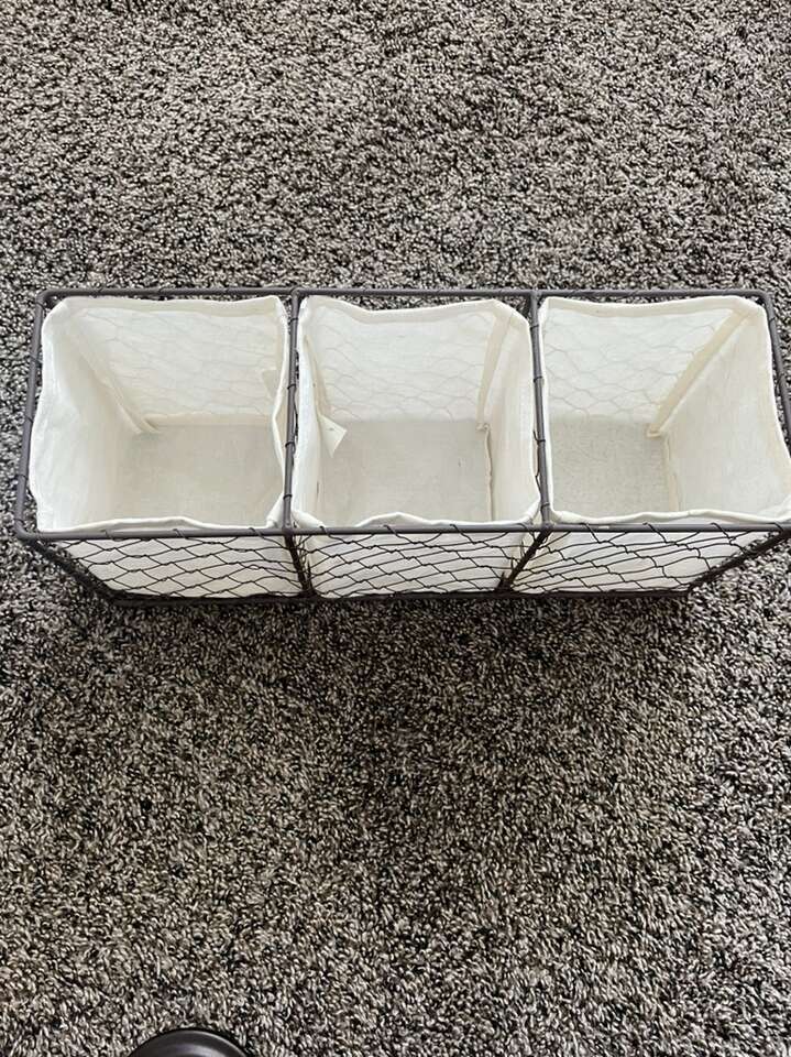 Wire tri basket organizer with canvas liners. The liners are removable and have been cleaned.