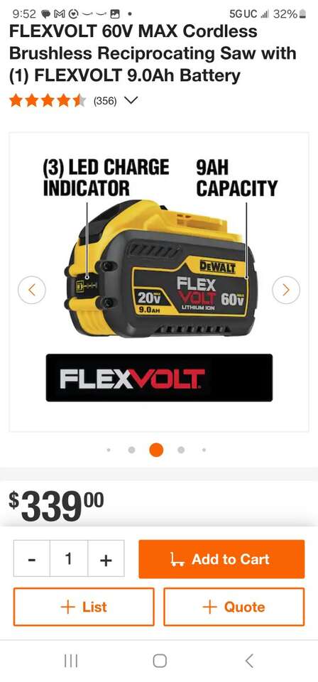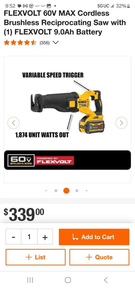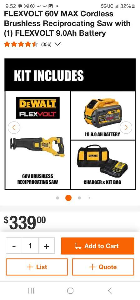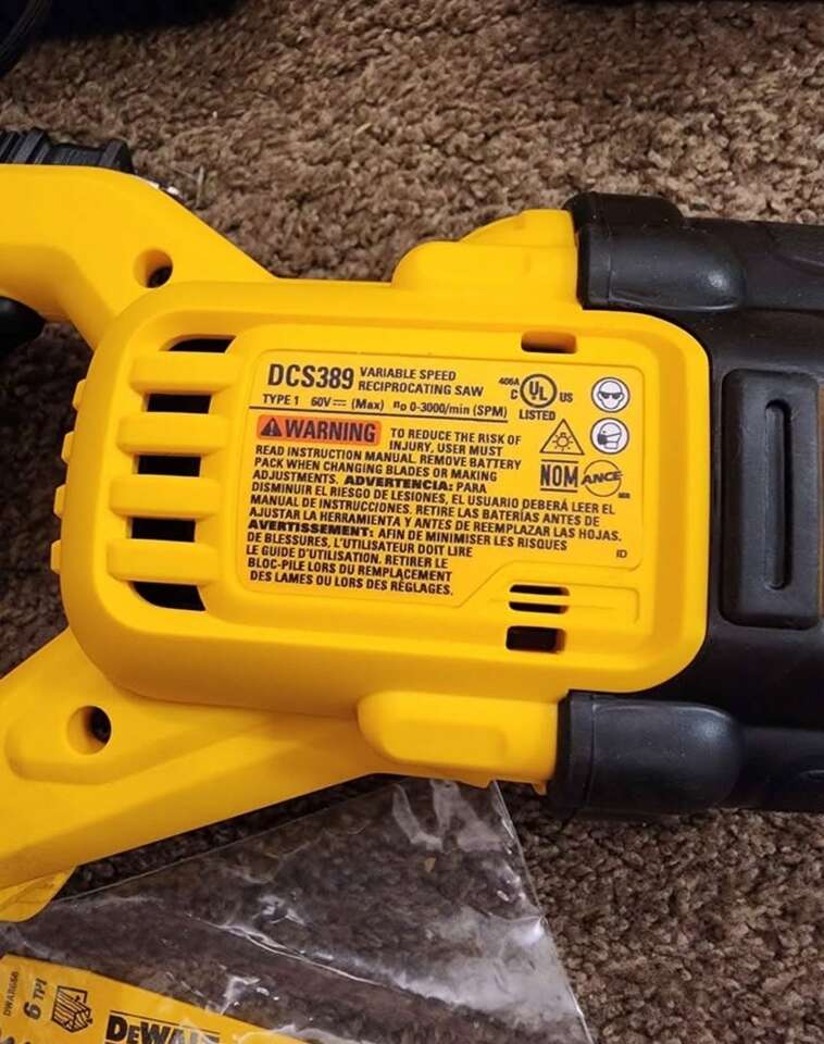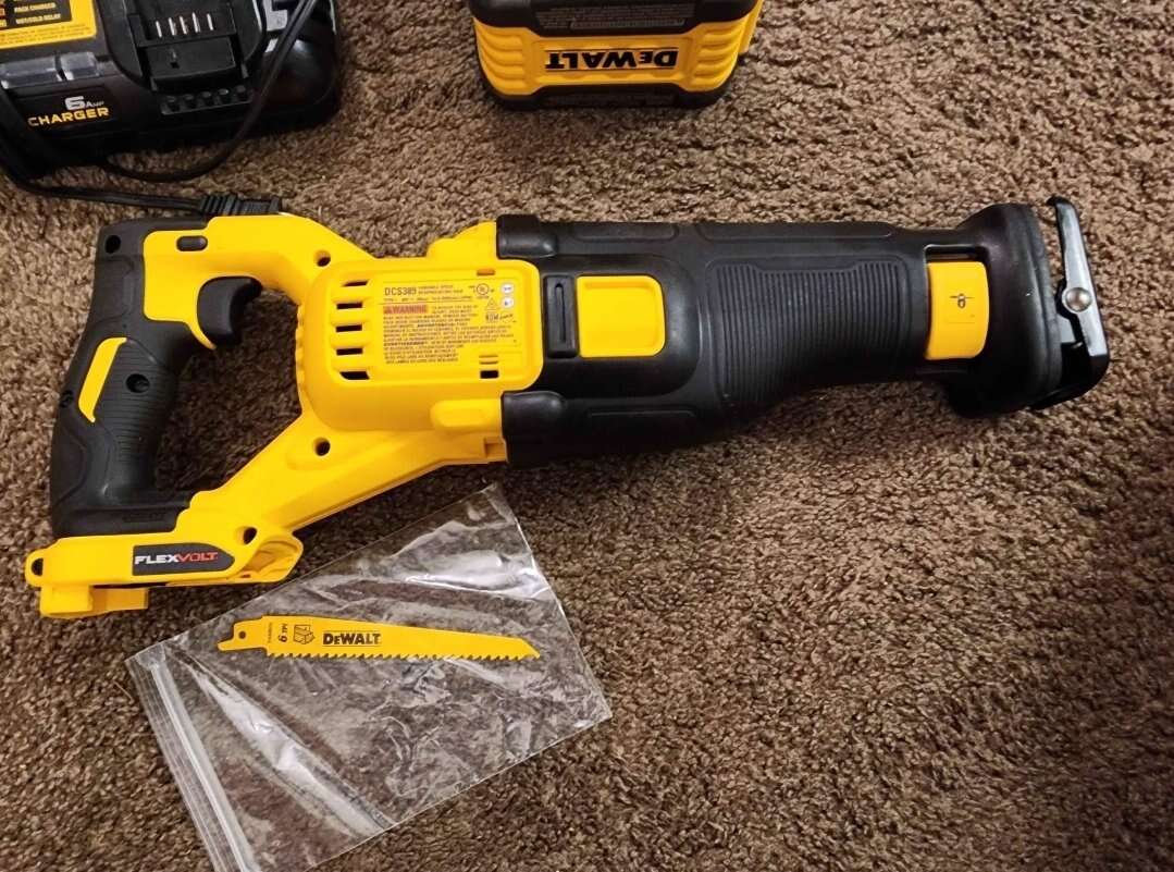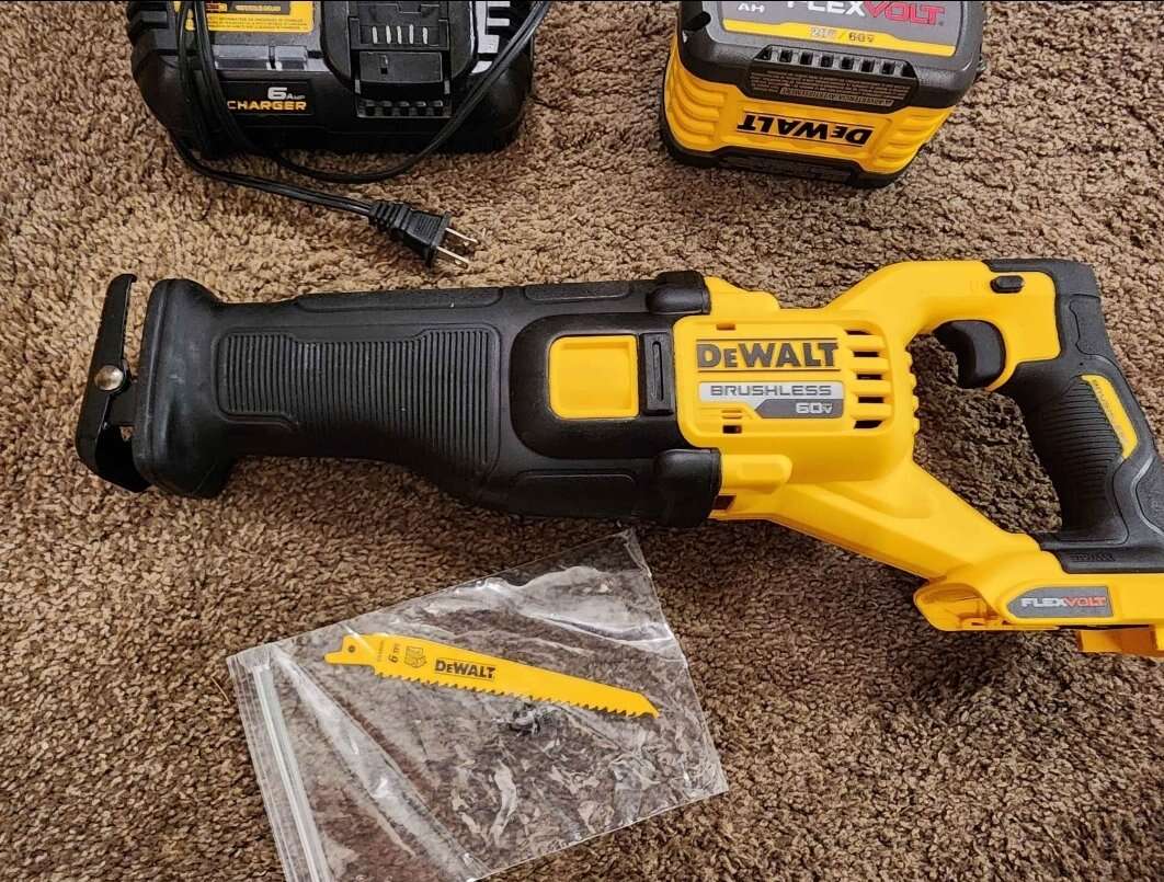 ZelleNew Dewalt FlexVolt 60V MAX Cordless Brushless Reciprocating Saw Kit. Includes one 9AH FlexVolt battery, 6AMP charger, and bag. Model Number DCS389X1