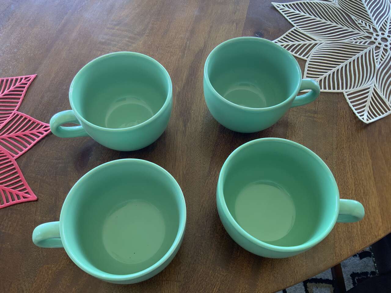 4 BEAUTIFUL LARGE MINT GREEN COFFEE/SOUP MUGS. IN BRAND NEW CONDITION. CASH/VENMO ONLY. IF INTERESTED CALL OR TEXT 801-360-0388