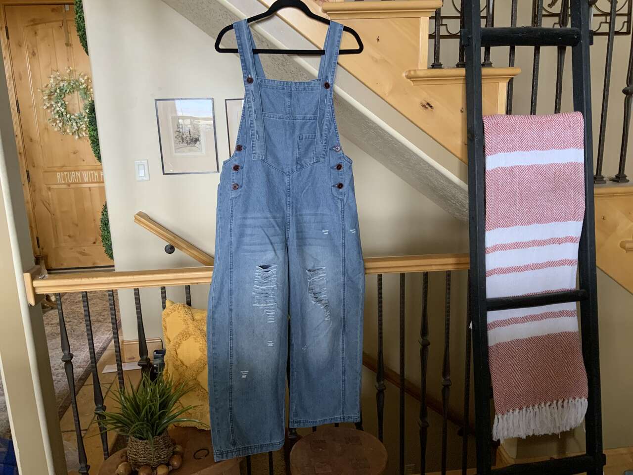 BRAND NEW WOMENS DISTRESSED OVERALLS-MEDIUM BLUE- SIZE S. CASH/VENMO ONLY. IF INTERESTED CALL OR TEXT 801-360-0388