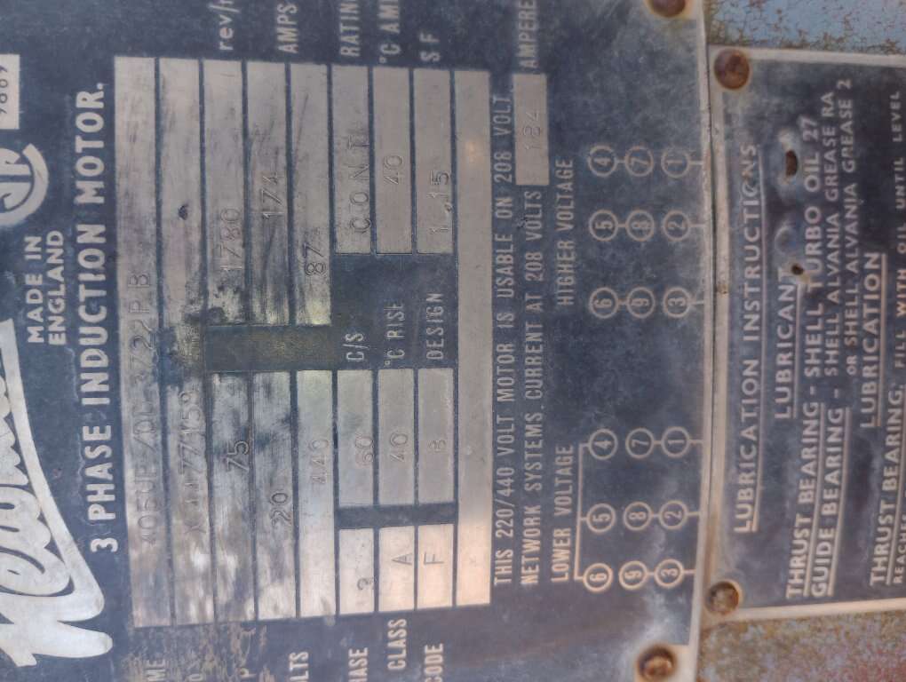 75 HP Well Motor the well failed and we upgraded to a larger motor has sat for a while but ran when it was pulled asking $1,200 obo