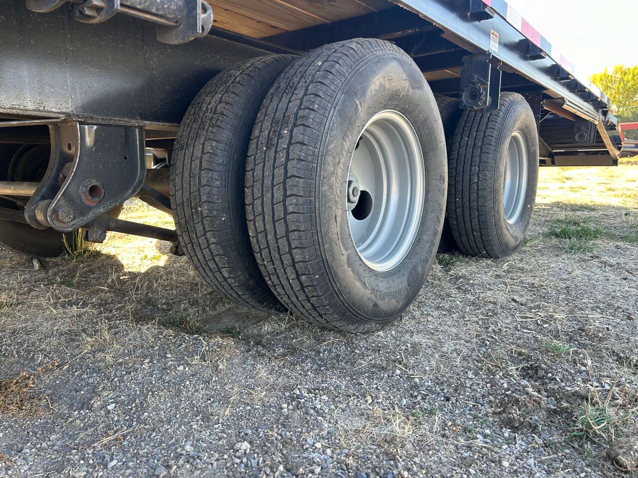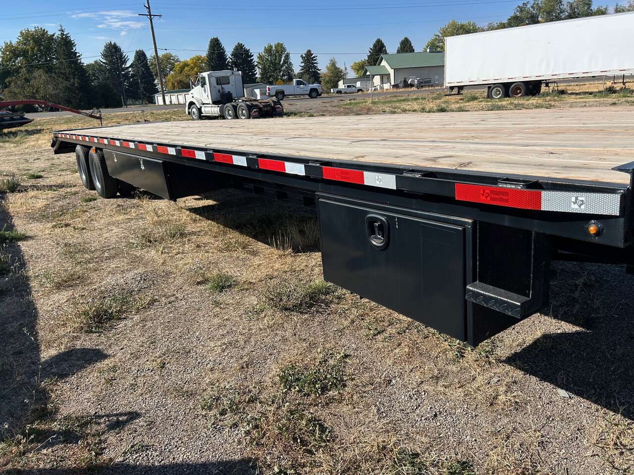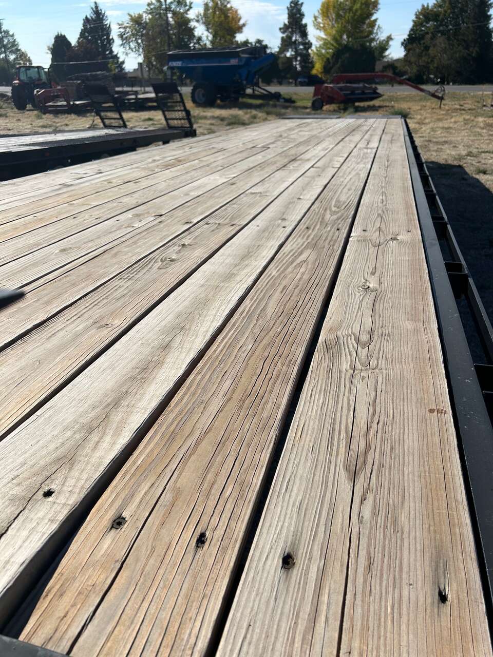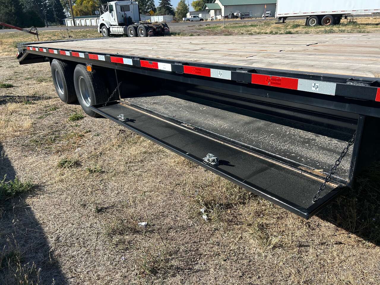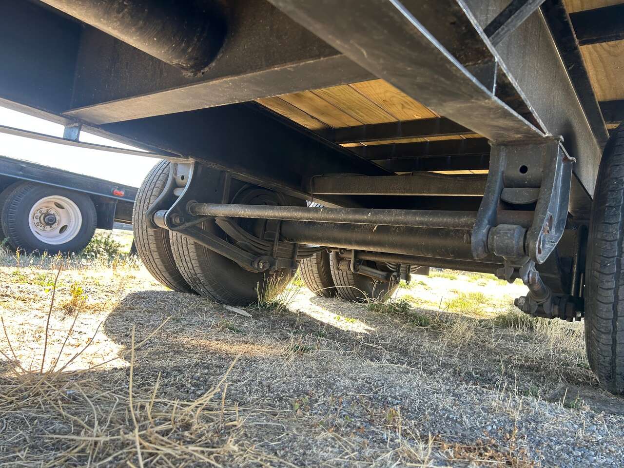 Hutch Suspension. Dual Tandem 12k Electric brakes on both, 14 ply tires w/spare, Built in front lock chain box, Mammoth Ramps, Torque Tube, Frame Bridging, Slide Rails with Slide Ratchets. 97” Under Deck Boxes.