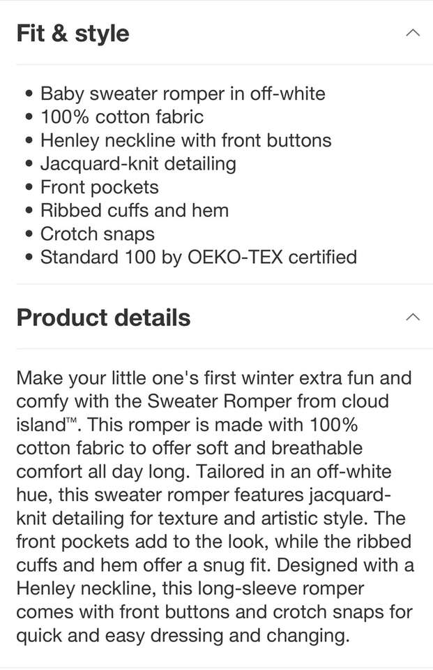 VenmoThis is a brand new Cloud Island romper in cream. It’s a 24 month size.