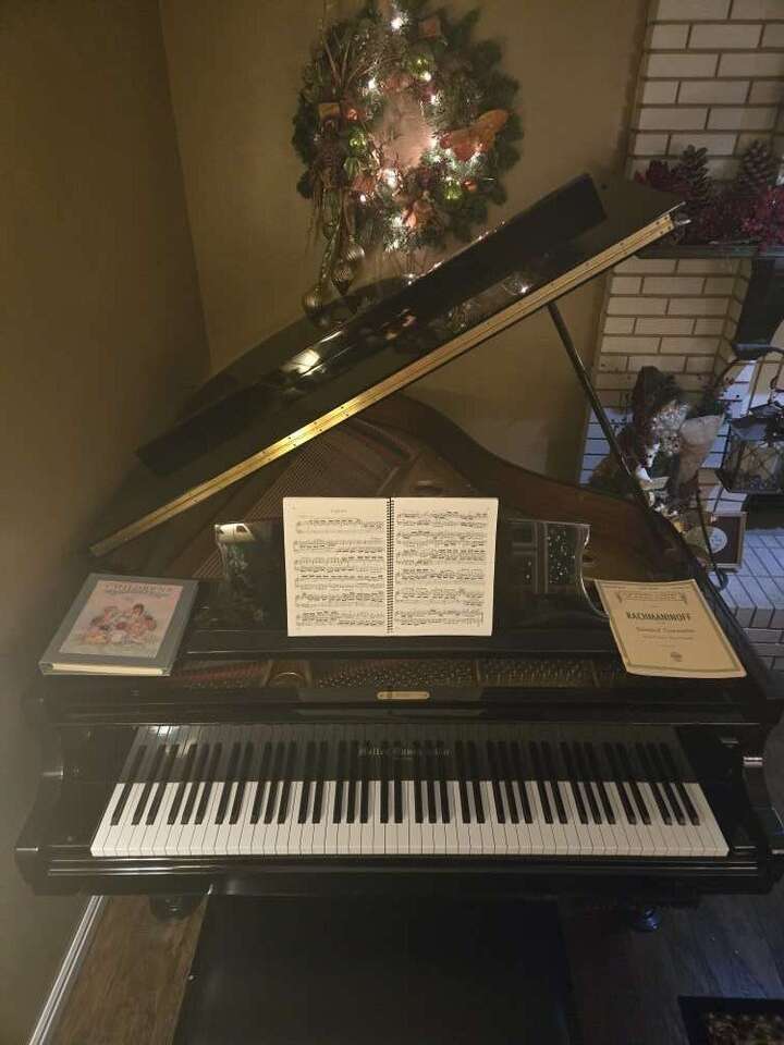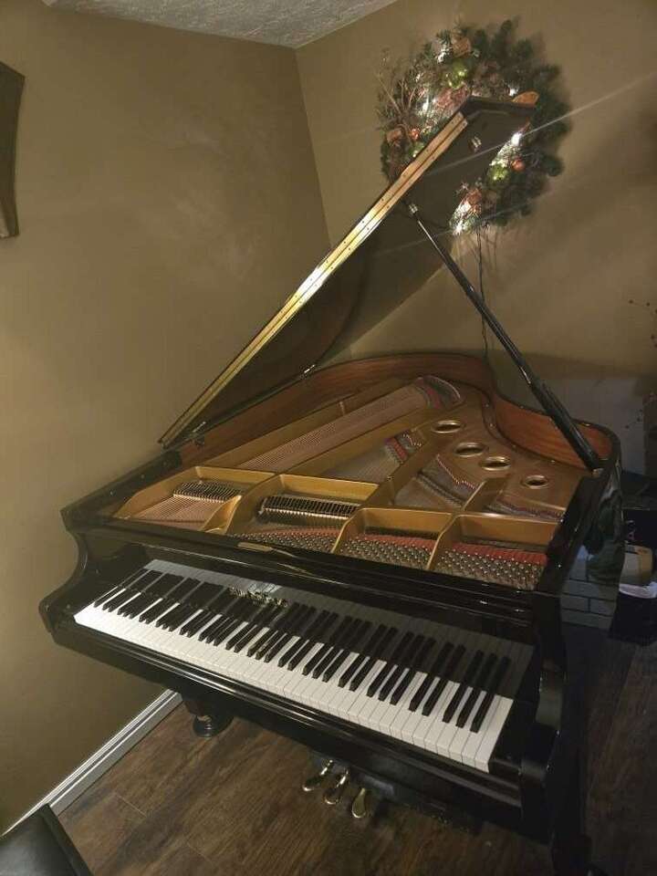Black glossy pretty baby grand piano. It’s not a Steinway, Yamaha, Kawai, Bosendorfer, Bechstein, Boston, Petrof, Chickering or Fazioli. But it is top of the line Samick.