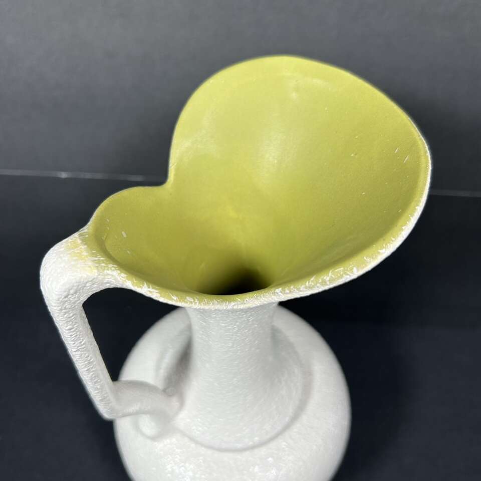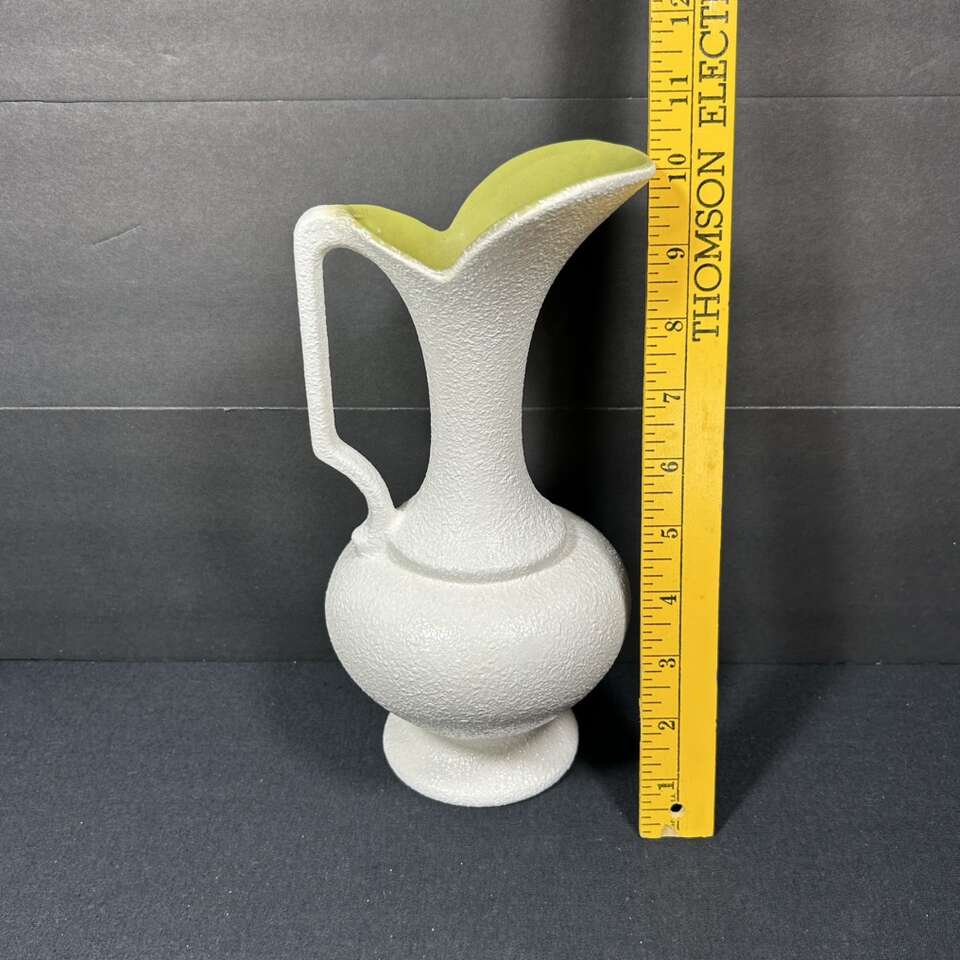 ApplePayGently used Haeger Classic PITCHER with glossy texturing on the outside tinted creamy ivory & matte olive green on the inside of this quintessential pitcher that doubles as a vase. About 10” tall X 5” circumference. Smoke Free. Delivery available to a convenient location when in your area for $5.