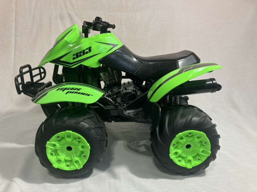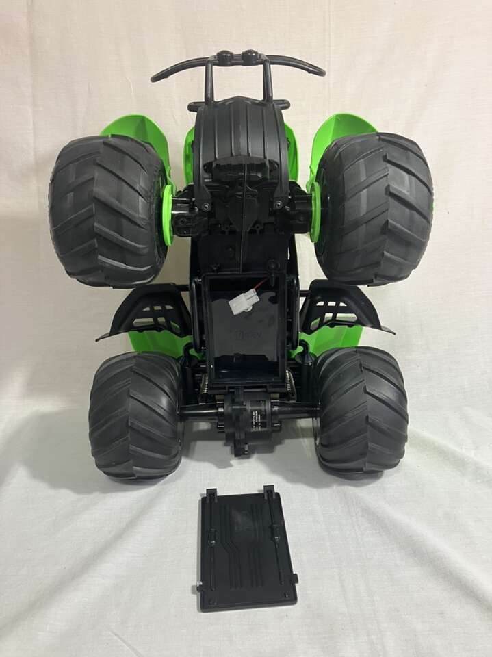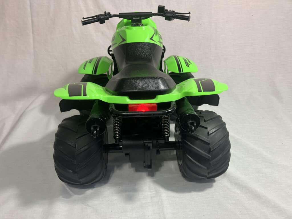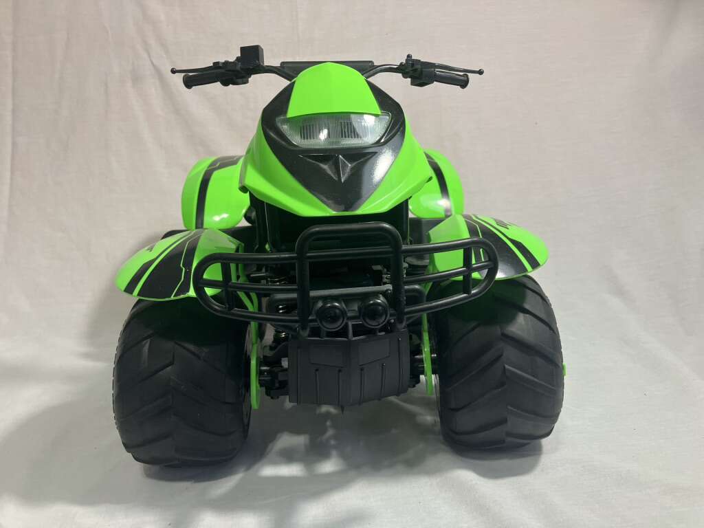 There are no cracks or breaks in any of the plastic. Has the remote, which works. Also has the battery and battery charger. The lights on everything work perfectly.