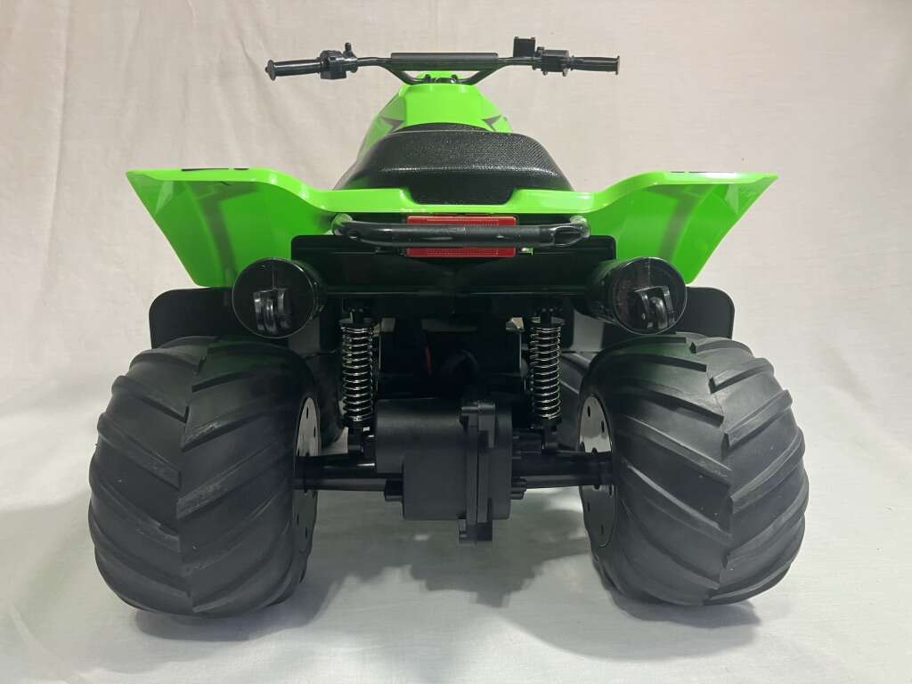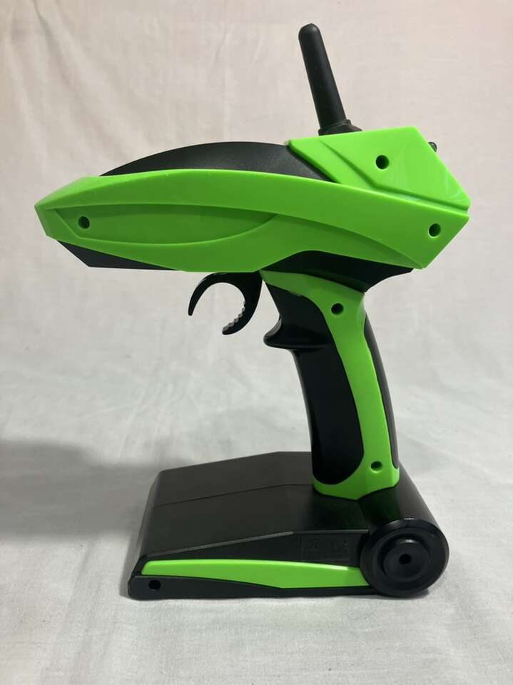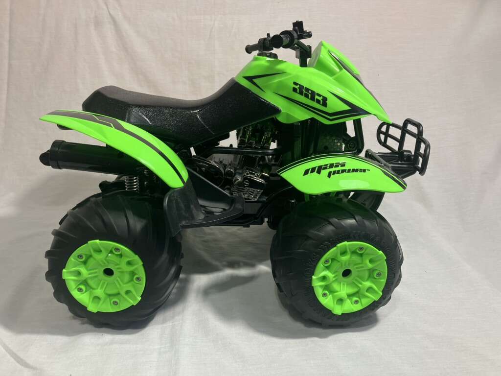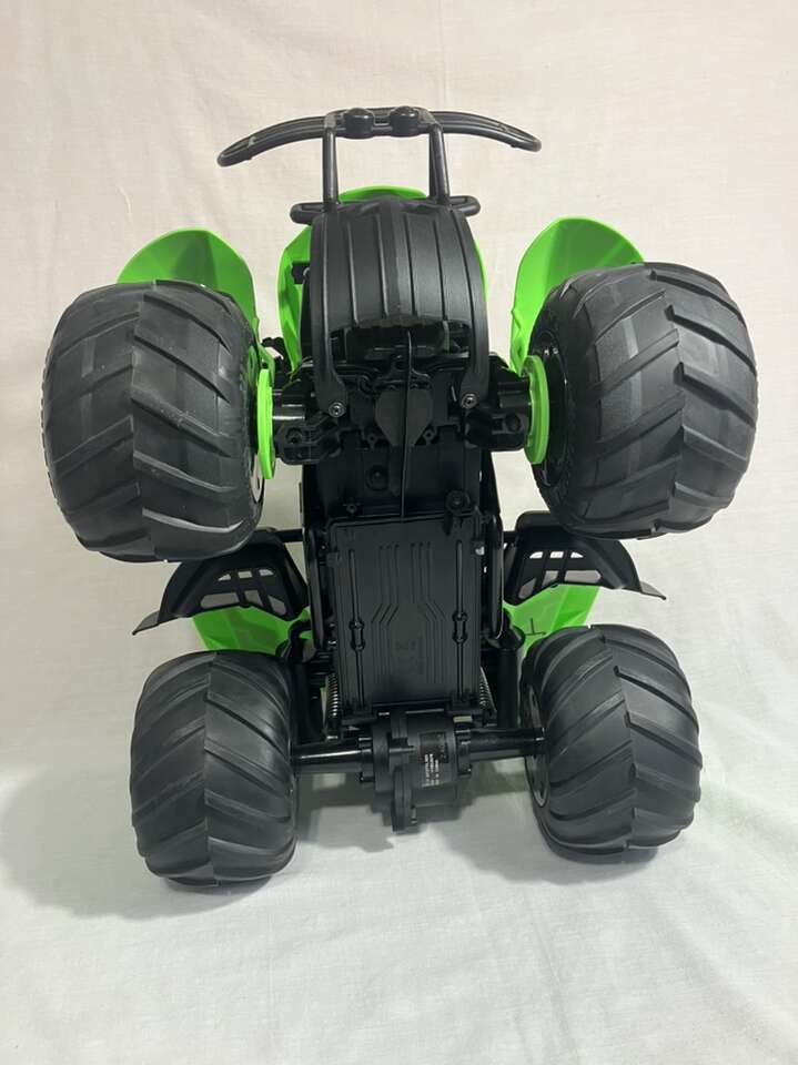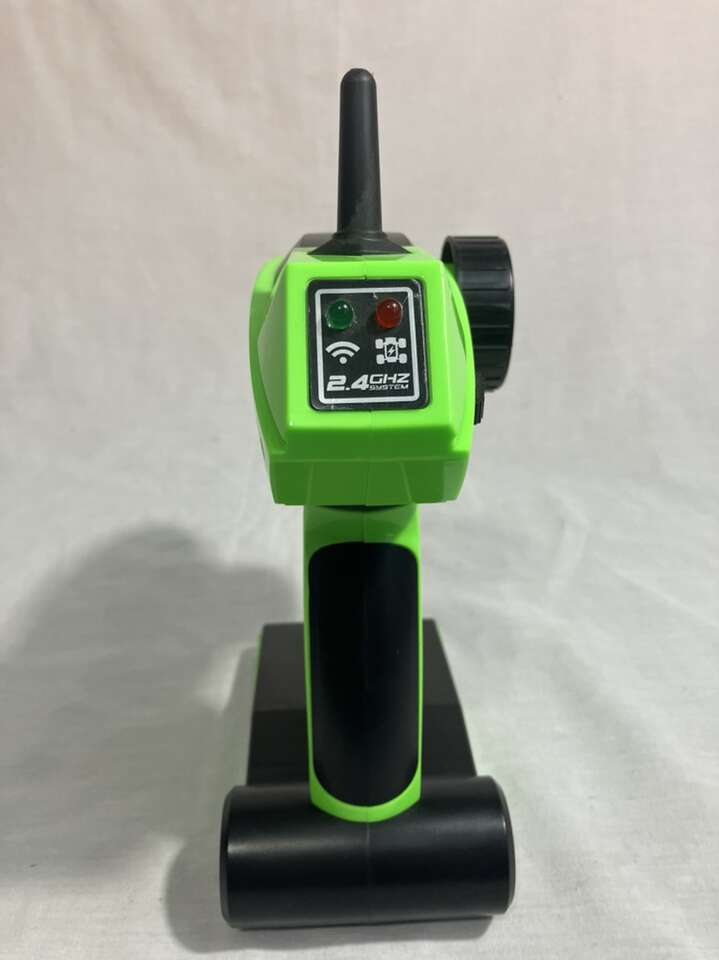 There are no cracks or breaks in any of the plastic. Has the remote, which works. Also has the battery and battery charger. The lights on everything work perfectly.