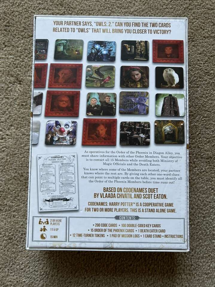 COMPLETE Codenames: Harry Potter. Top Secret Co-op Game by Vlaada Chvatil, USAopoly, 2018. Award-winning game. 2+ players, ages 11+. Complete, no missing pieces, excellent condition. Text only. Cash or Venmo.