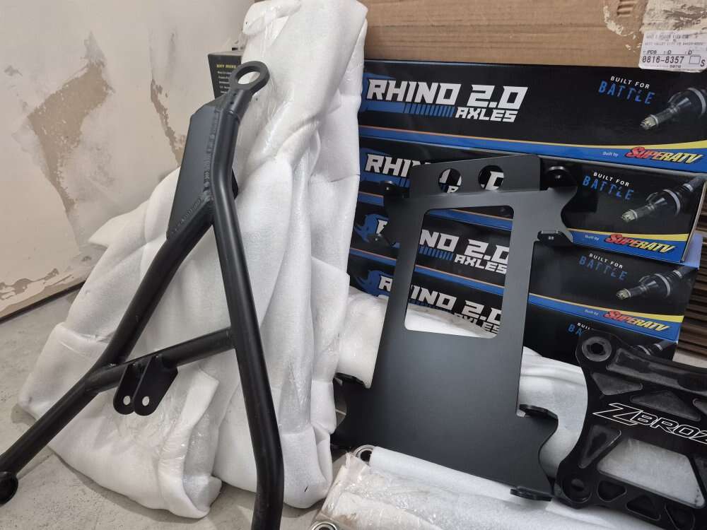 A arms, trailing arms, radius rods, gusset plate, rhino axles, tie rods. Everything is brand new.