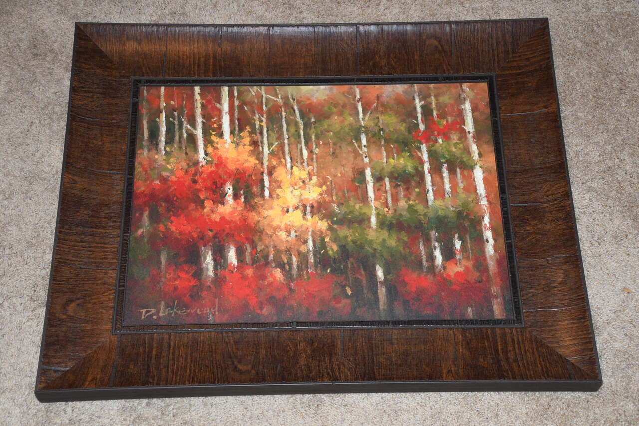 This Beautiful picture of QUAKING ASPEN TREES by D Lakewood is about 26" x 32" Framed. Our home is smoke free. Questions??? Please ask. We are located in Plain City. Cash only please.