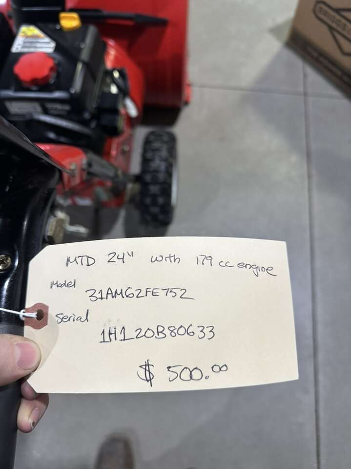 This is a used MTD 2-stage snowblower for sale at Cutler's! This model has been repaired and refurbished by professional power equipment mechanics and is in good working condition!