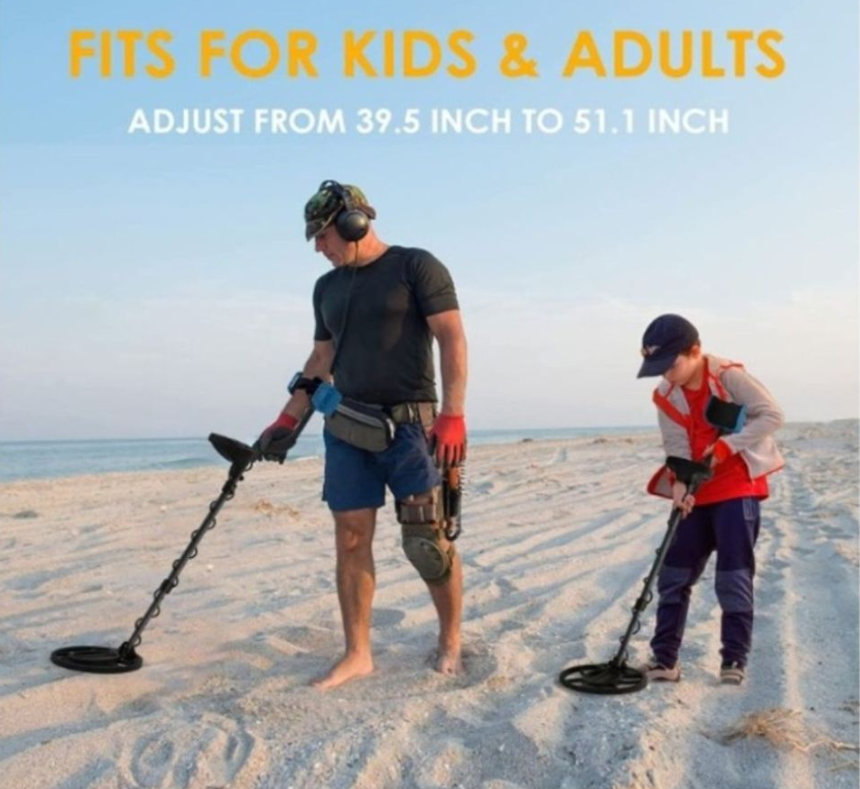 ApplePayConvenient to Use - Ergonomic handle design makes the portable metal detector perfect for all-day use. It can be adjusted from 39.5 to 51.1 inches and fit in height for adults and children, which allows you to share your treasure-hunting spirit with your little ones! Also, with the intuitive backlight display, you can easily get the type of metal target, depth, sensitivity level, operating mode, and battery indication at dawn, dusk, or even broad daylight.