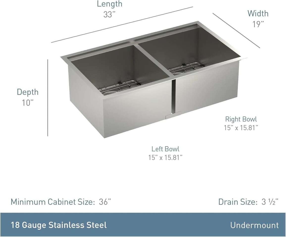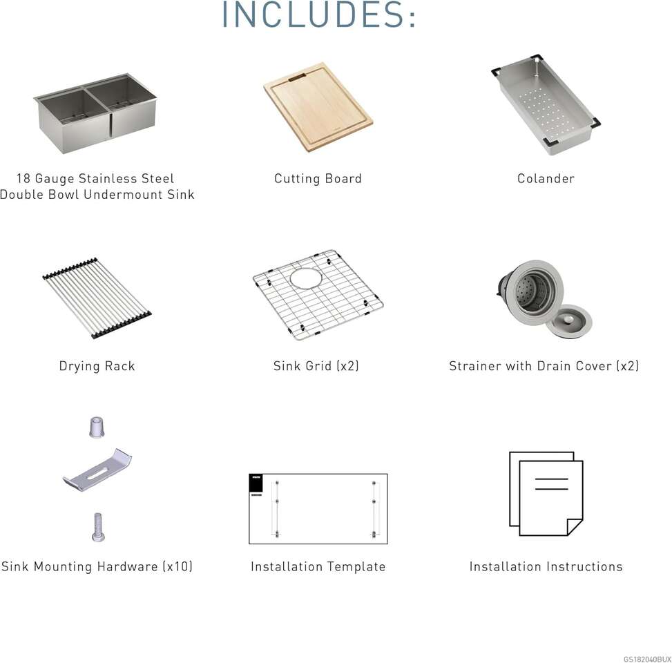 Moen Luke Chef 18-Gauge stainless steel Undermount 33" x 19" Double bowl Workstation Kitchen sink, includes cutting board, fleable drying rack, colander, bottom sink grid,and drain GS182040BUX brand new