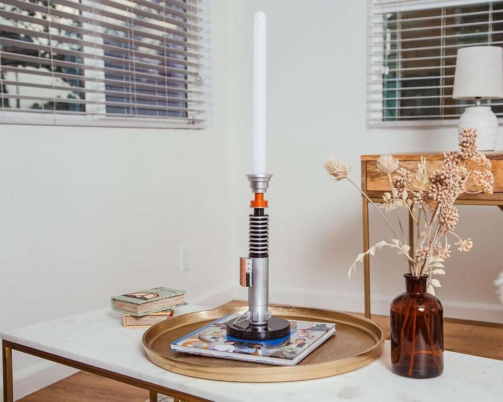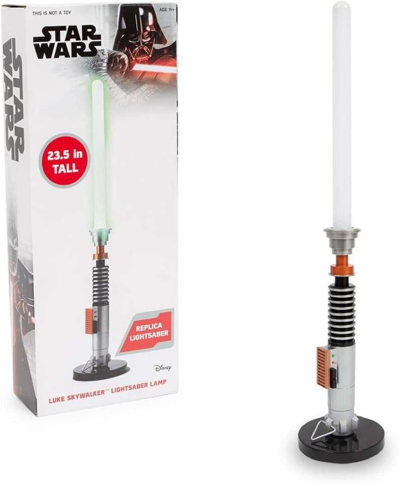 Bring the Force to Your Space Illuminate your bedroom desk or playroom with Luke Skywalker's iconic green Star Wars lightsaber. This room lamp radiates Jedi-level coolness and turning any room into a Star Wars sanctuary.