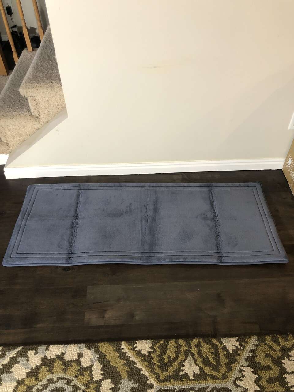 UNUSED Memory Foam Bath Runner Long Bath Mat Microdry 24x58 Blue Quck Drying Skid Resistant