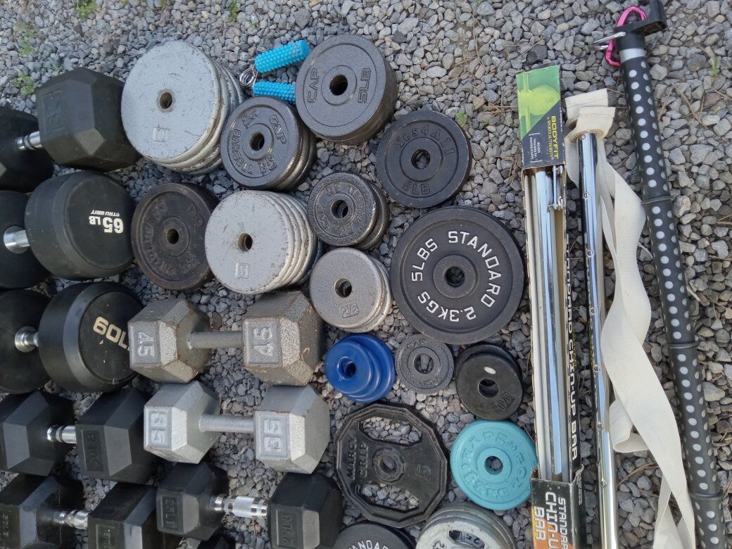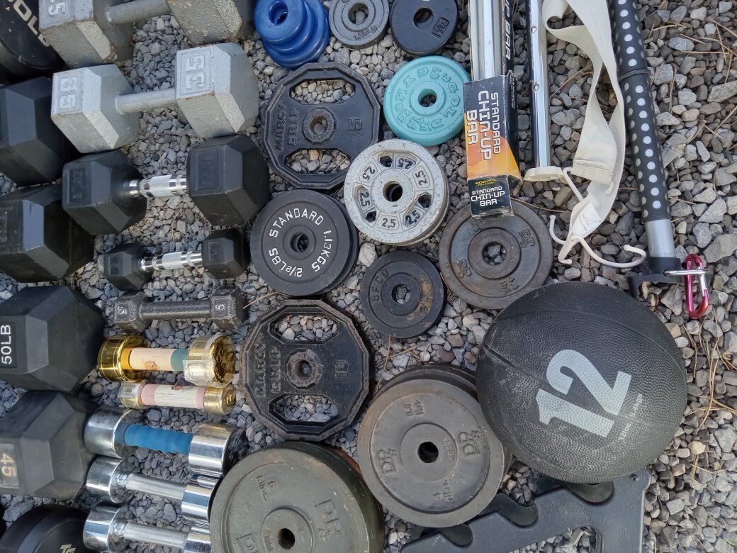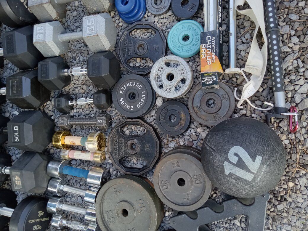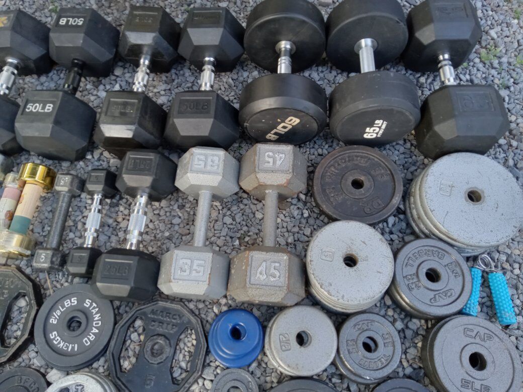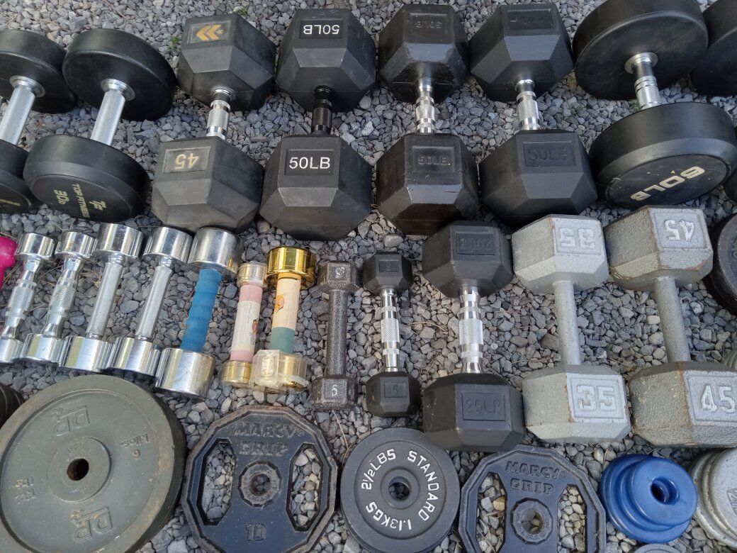 Venmo(Pictures updated on 5/9)(Inventory updated on 9/30) Up for sale are random Weight Plates and random Dumbells. Great for adding to your existing set. All weight plates have the 1 inch center hole.