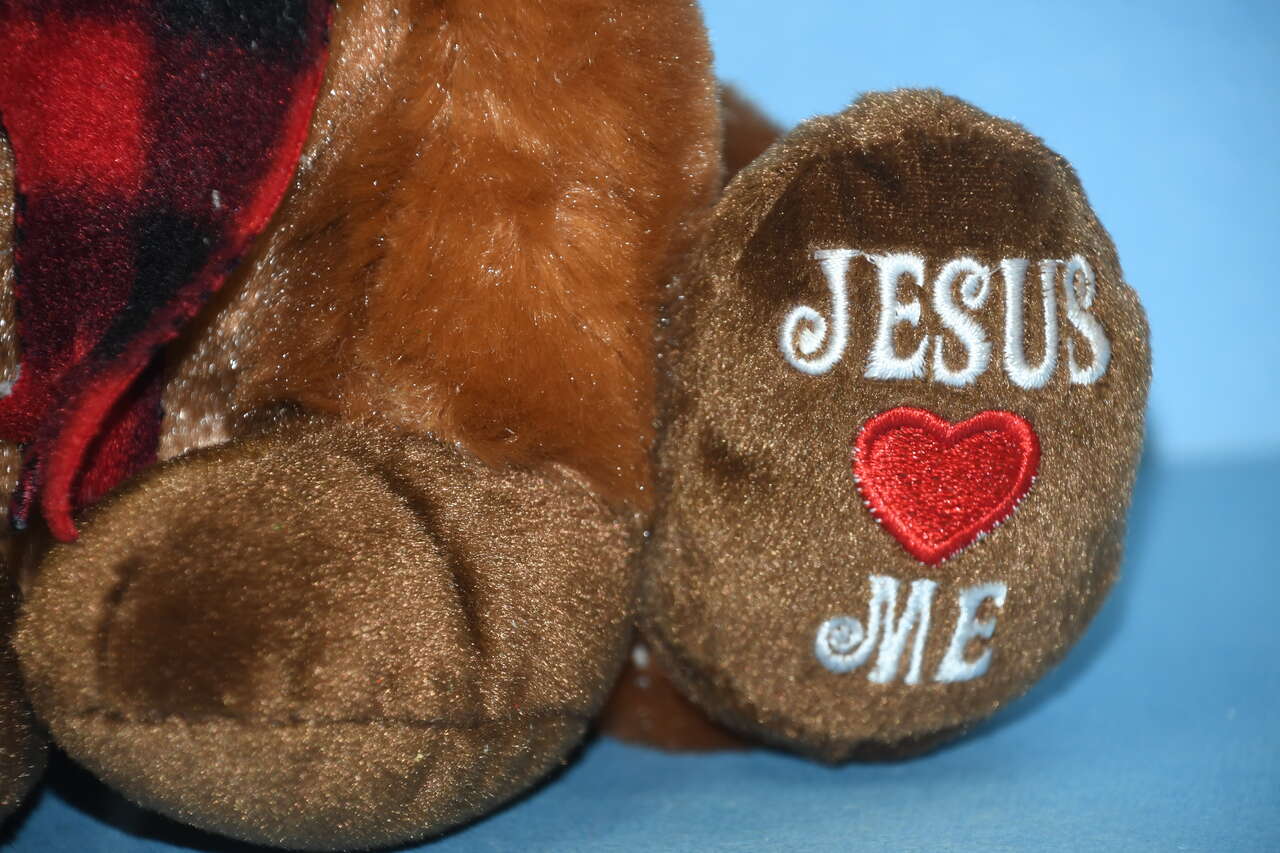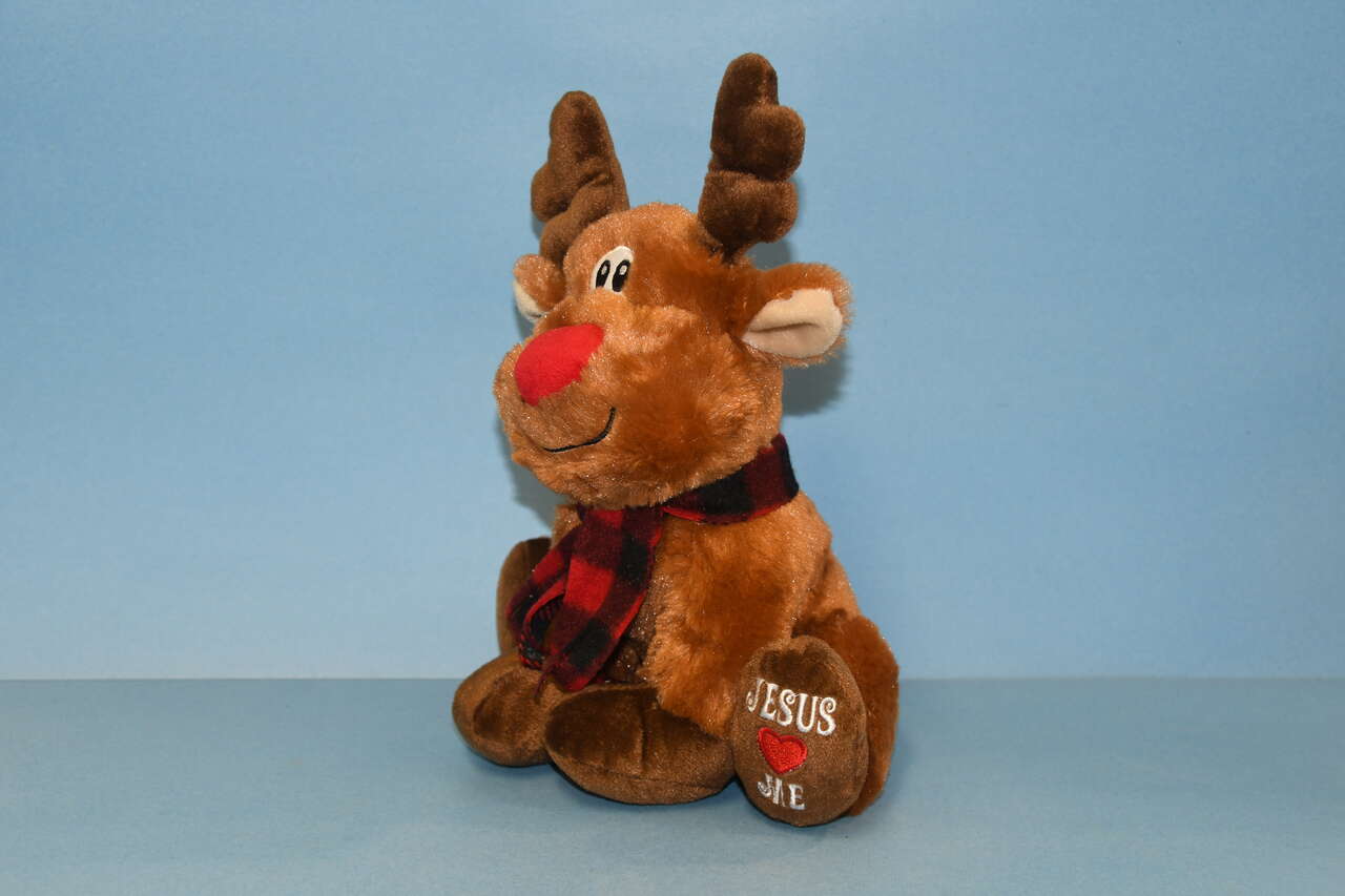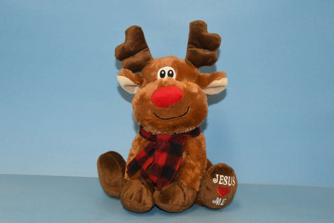 This "JESUS LOVES ME" CHRISTMAS STUFFED MOOSE is about 11" in height. It is SOFT & CLEAN! Questions??? Please ask. We are located in Plain City. Cash only please.