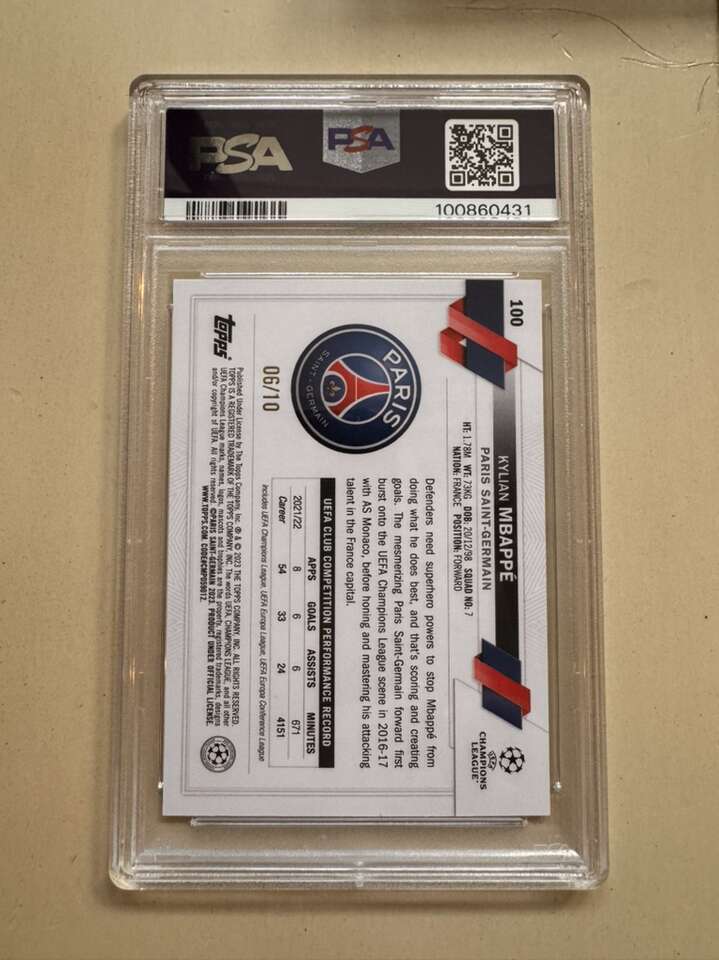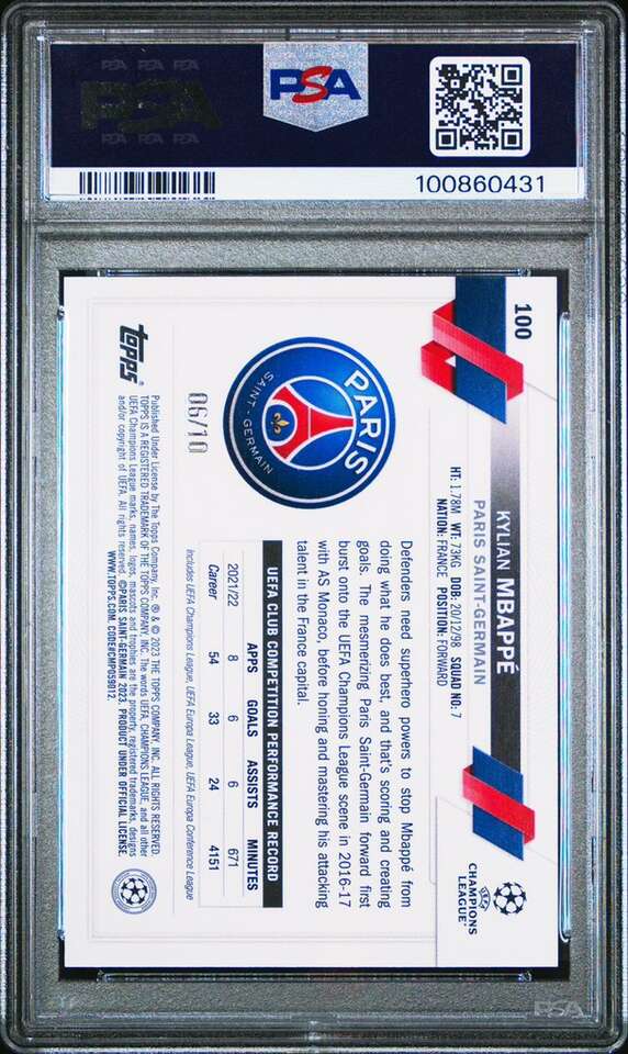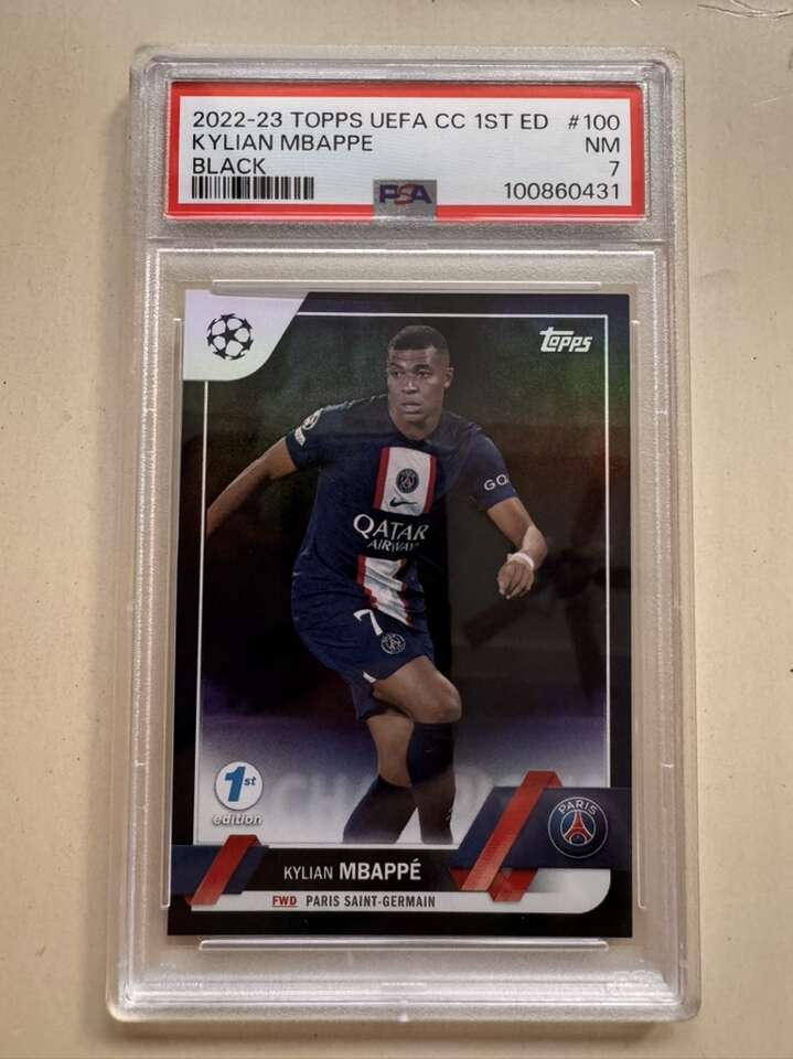 2022 Topps UEFA CC 1st Edition Kylian Mbappe Black /10 #100 PSA 7