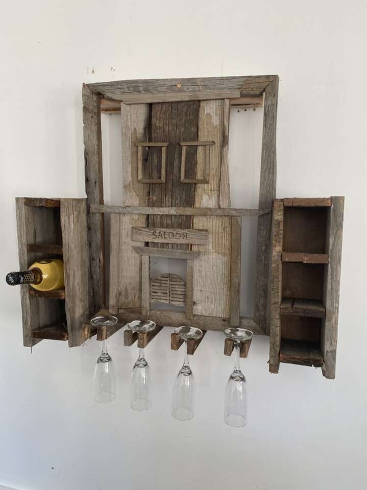 VenmoHandmade Barnwood wine rack . Holds six bottles and four glasses.(not included.) 25” x 19” text Mike 801-710-0752.