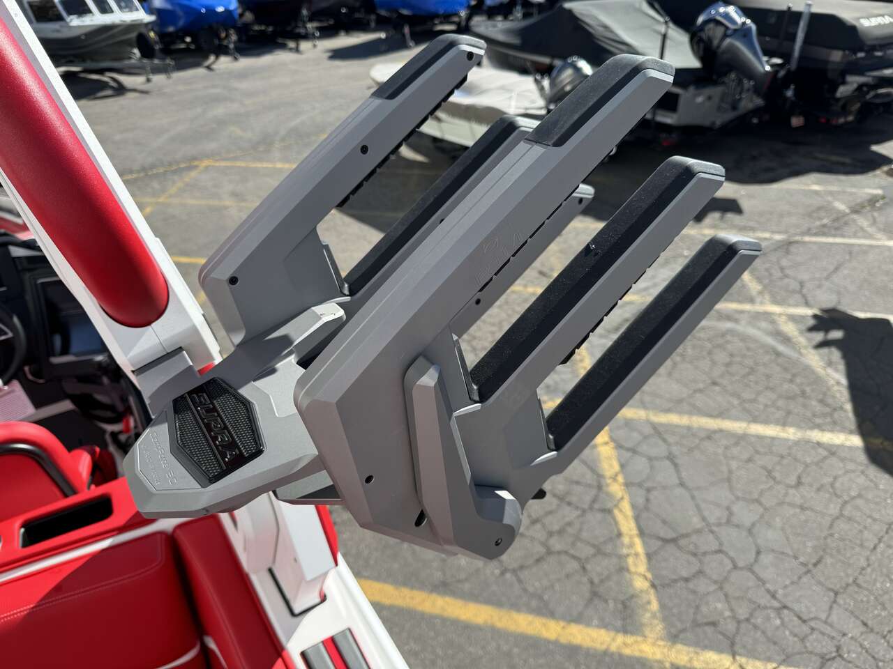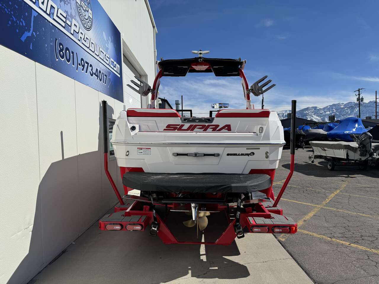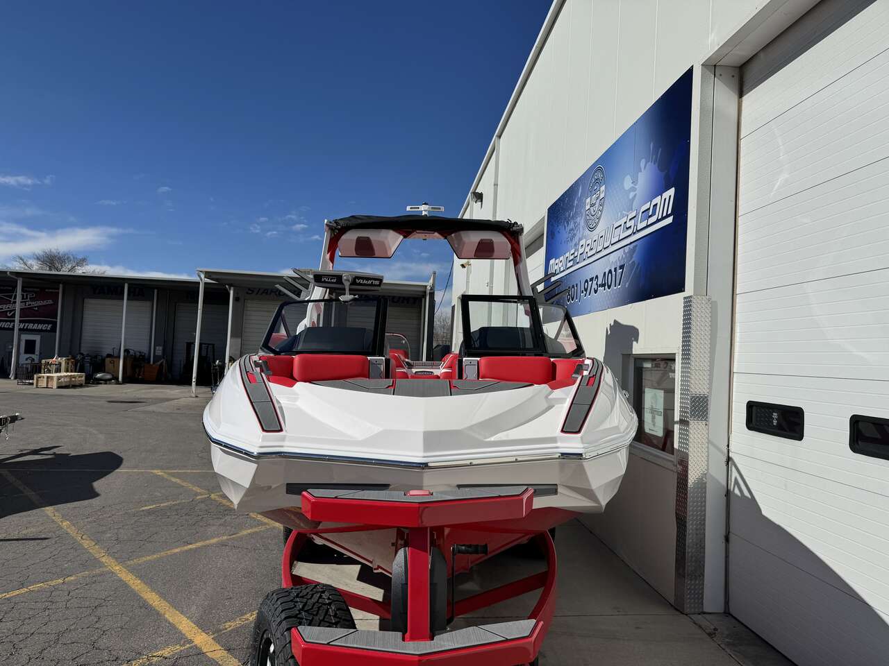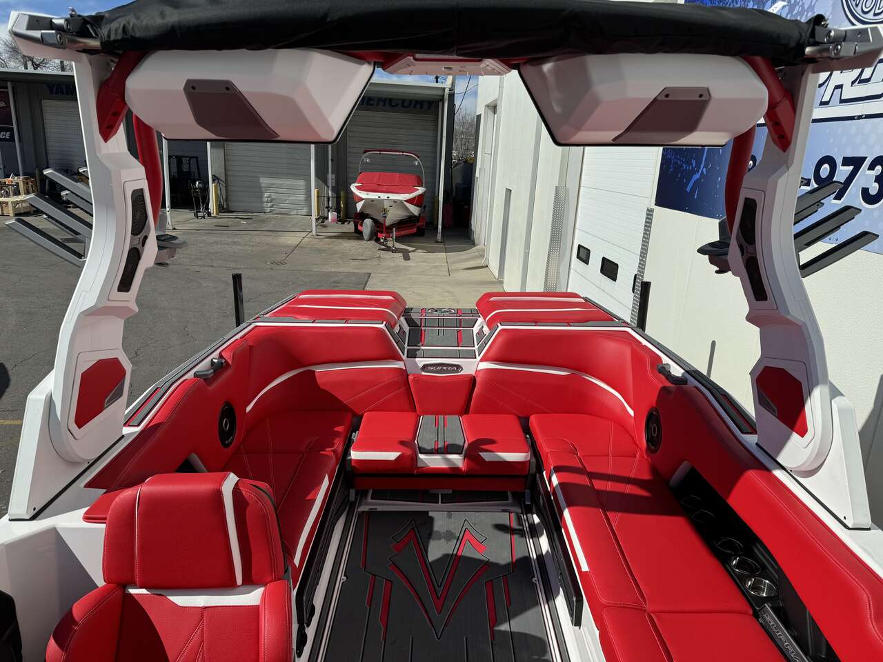END OF SEASON SALE!! White Main with Red Hull and Red seats,Supercharged engine, stern thrusters, power swim step, and so much more. This boat has most options and will be the talk on the water.