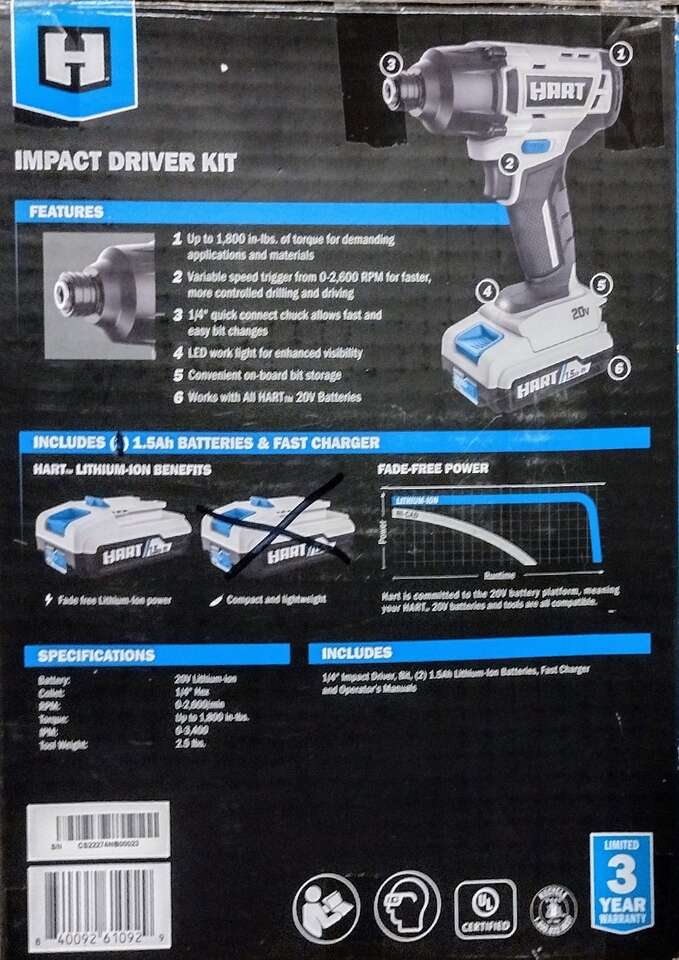 PayPalBrand New Hart 20 volt Impact Drill. Comes with 1 20 volt 1.5 ah battery and 1 charger.
