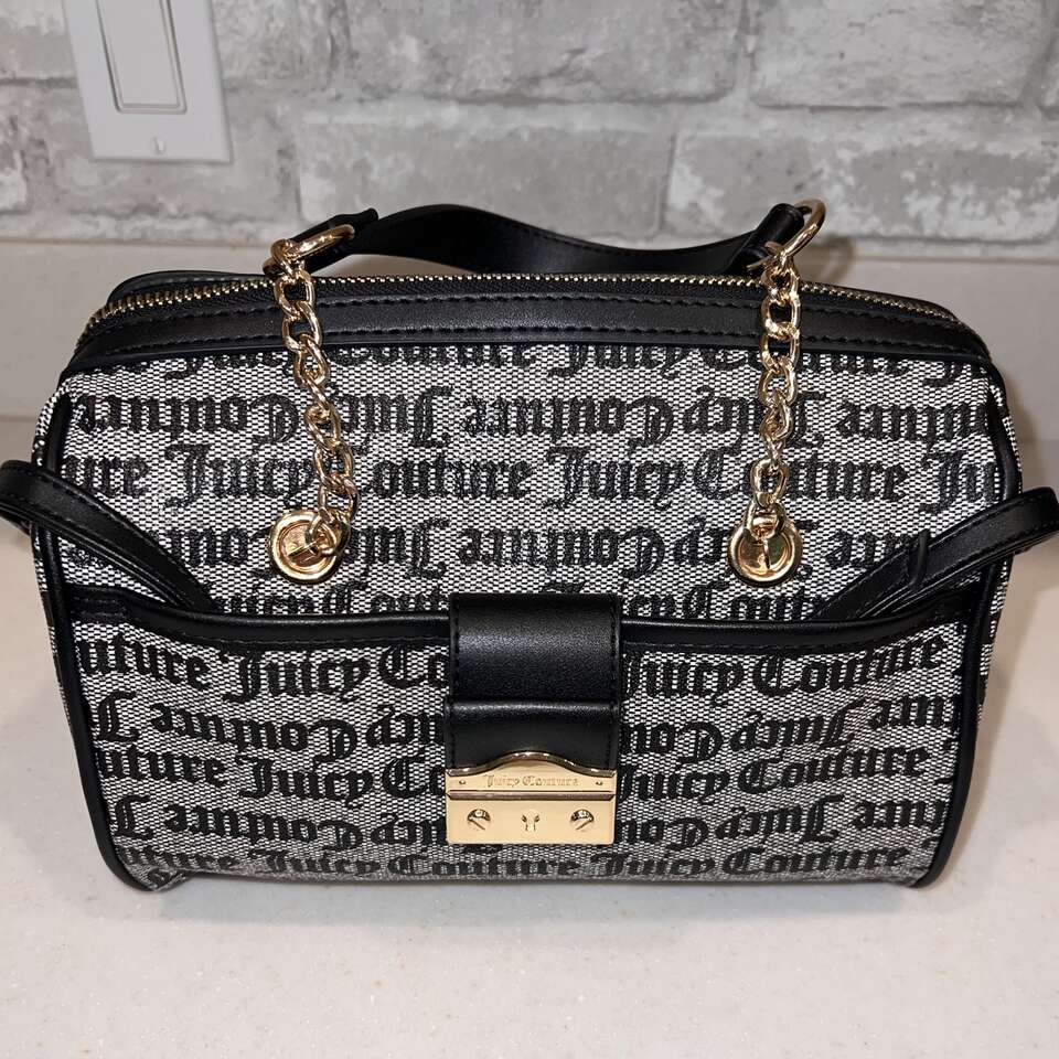 Juicy Couture “Pop That Lock” Black Gothic Logo Satchel Bag Medium size Handbag or Crossbody