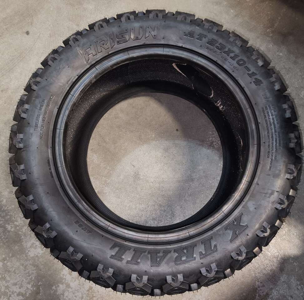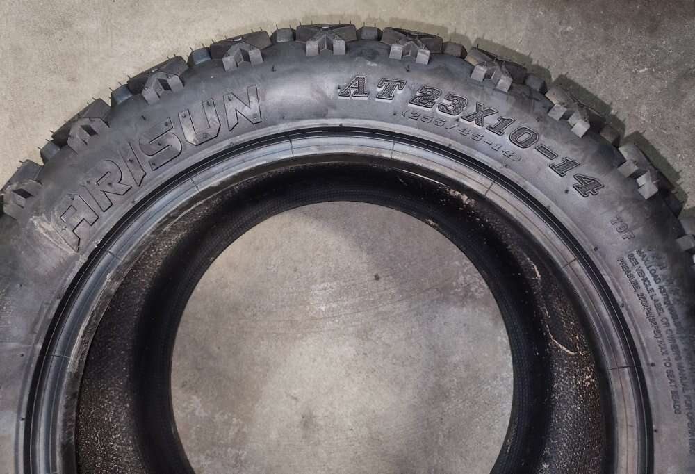 Arisun AT23x10-14 255/45-14 X-Trail All Terrain Golf Cart Tires 6 Ply Set of two for $60 New I do have a single tire and rim available in the same size tire if you needed a third tire *