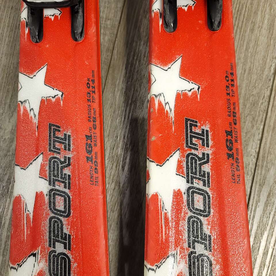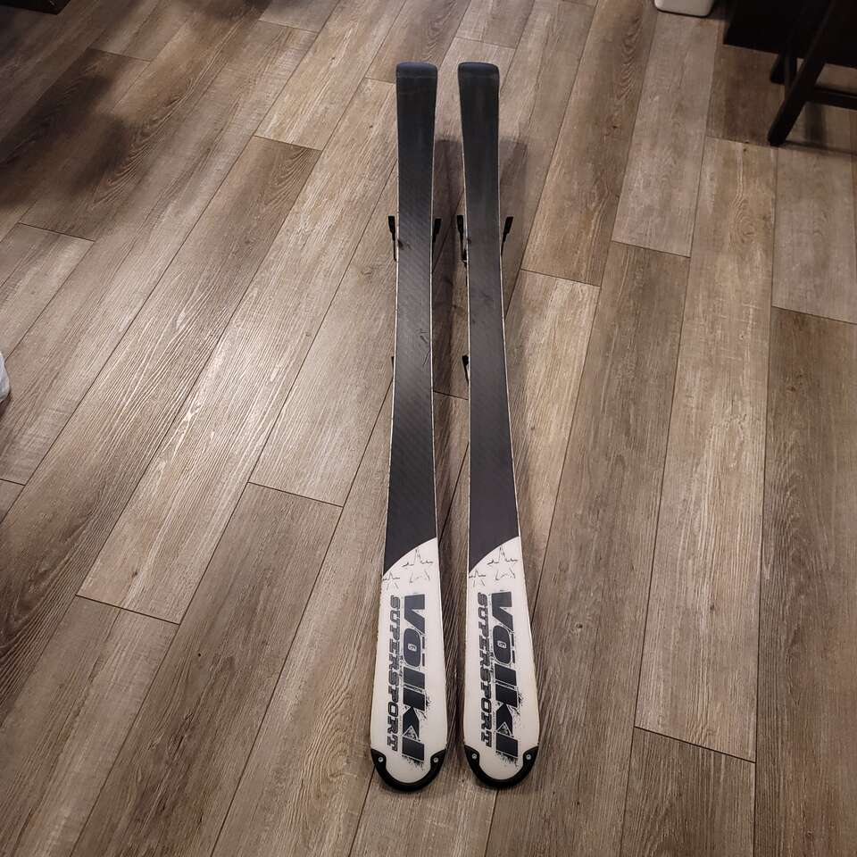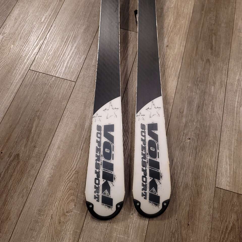 Volkl SuperSport Allstar 161cm downhill skis with Marker Bindings. Tail 99mm waist 68mm Tip 114mm