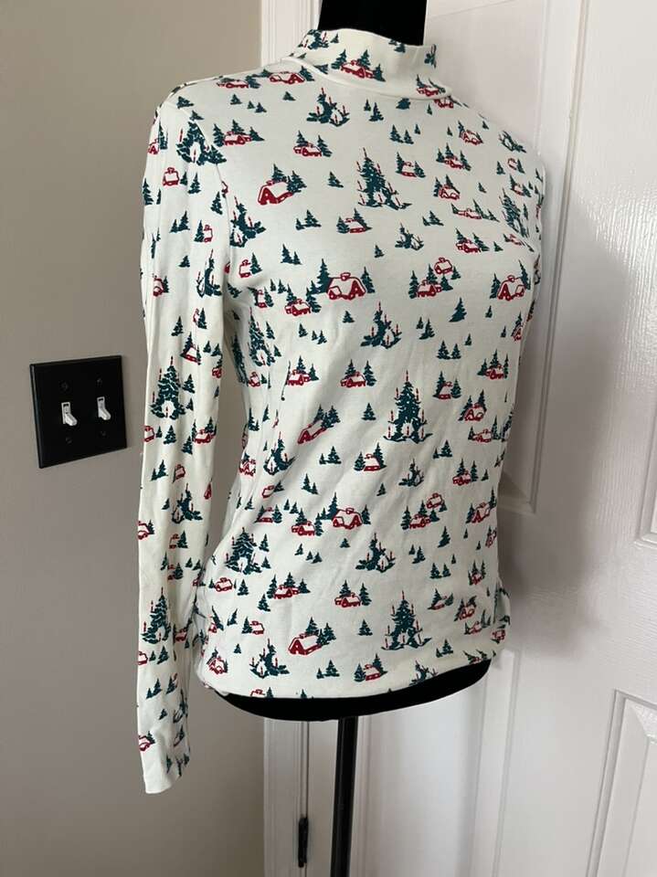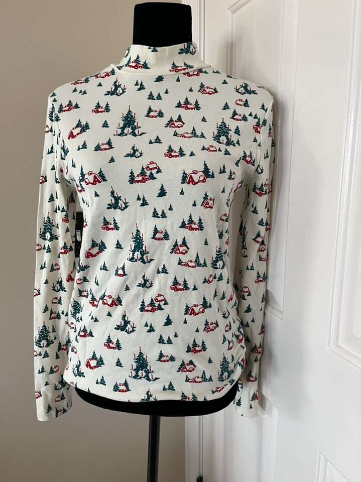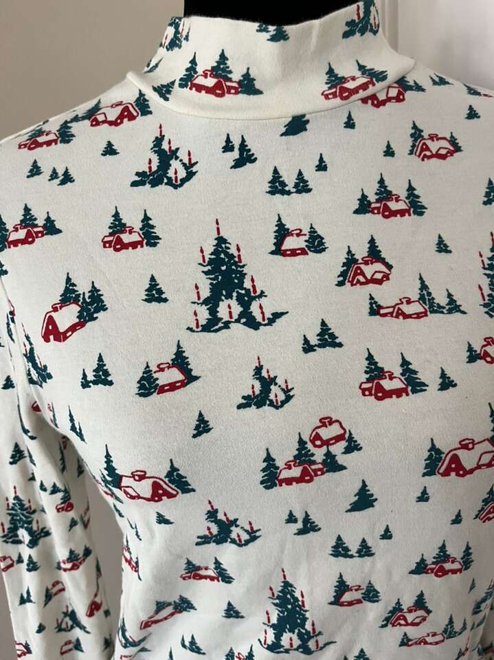 Vintage White Stag Christmas turtleneck style shirt with trees M 8-10