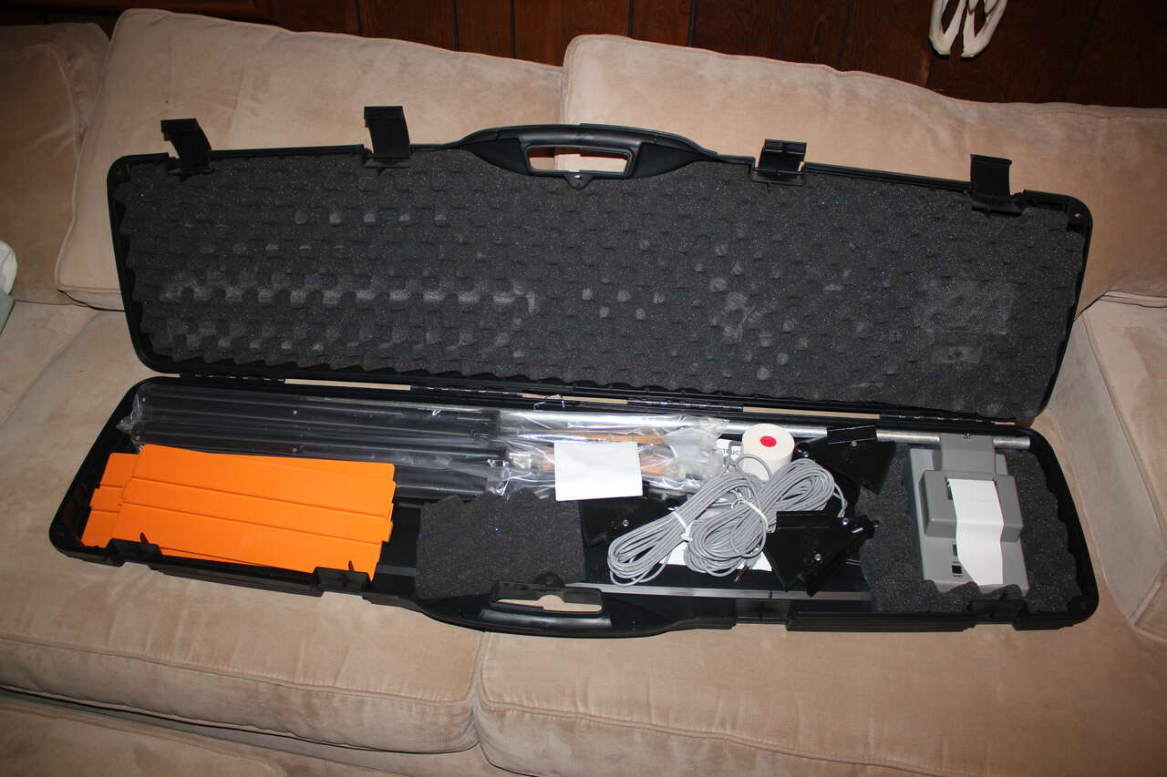 Oehler 35P shooting chronograph system. The gold standard for many decades. I have and use this exact same model for over 30 years and love it. Oehler stopped making this model for many years but restarted in 2010 and I had to have this as a backup. This includes the 3 sensor elements with long cables, the 3 skyscreens (black side pieces and orange top piece), mounting rail and tripod legs, computer/printer, hardcase, extra printer paper, and instructions.