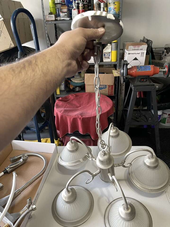 Five Light Chandelier Stainless Steel works excellent just remodeling the house and went with a different light set up , if you have any questions or offers feel free to text me or call me thanks for viewing my ad and have a great day
