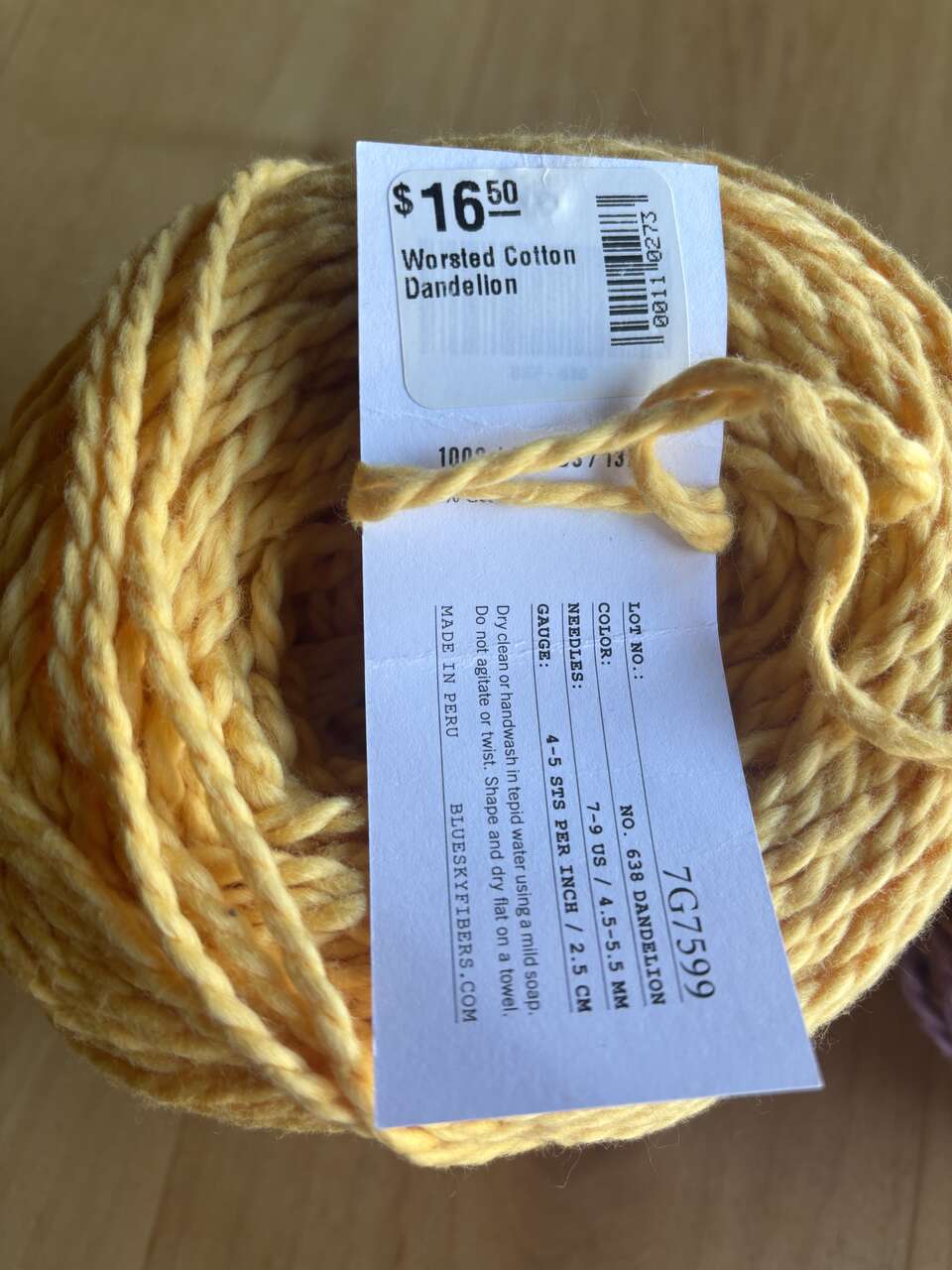 VenmoNew with tags Yarn Blue Sky Fibers, organic cotton worsted, two colors Orchid purple and yellow Dandelion. $10 for both yarns